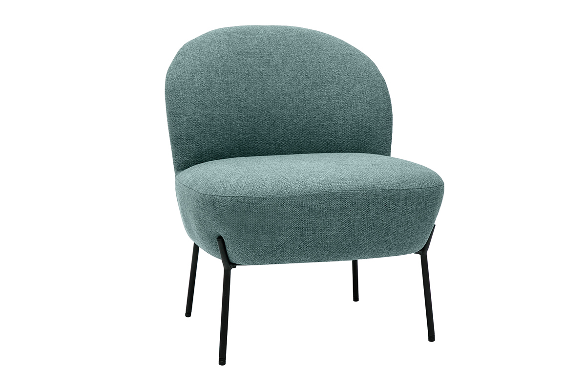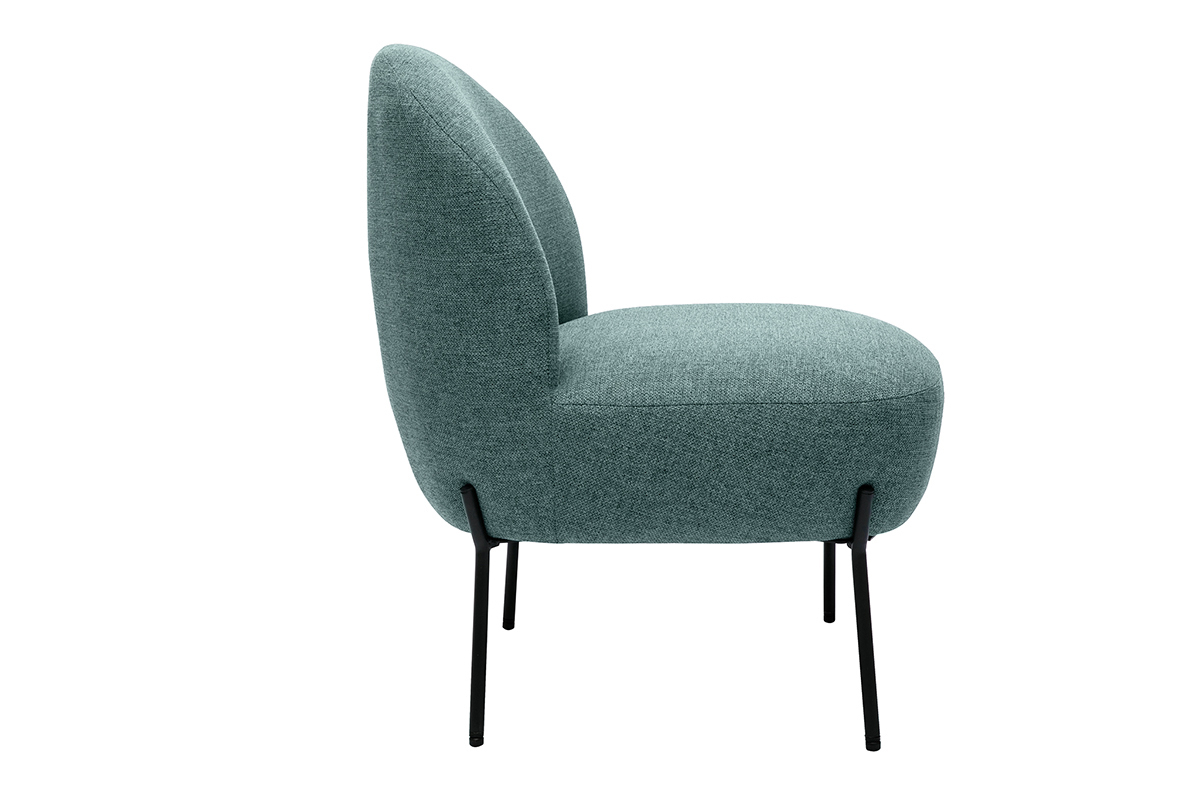 Pour un ensemble harmonieux, associez ce fauteuil moderne en tissu vert de gris et métal noir à des meubles de rangement dont le design est inspiré de la tendance organique. Résultat du plus bel effet garanti !