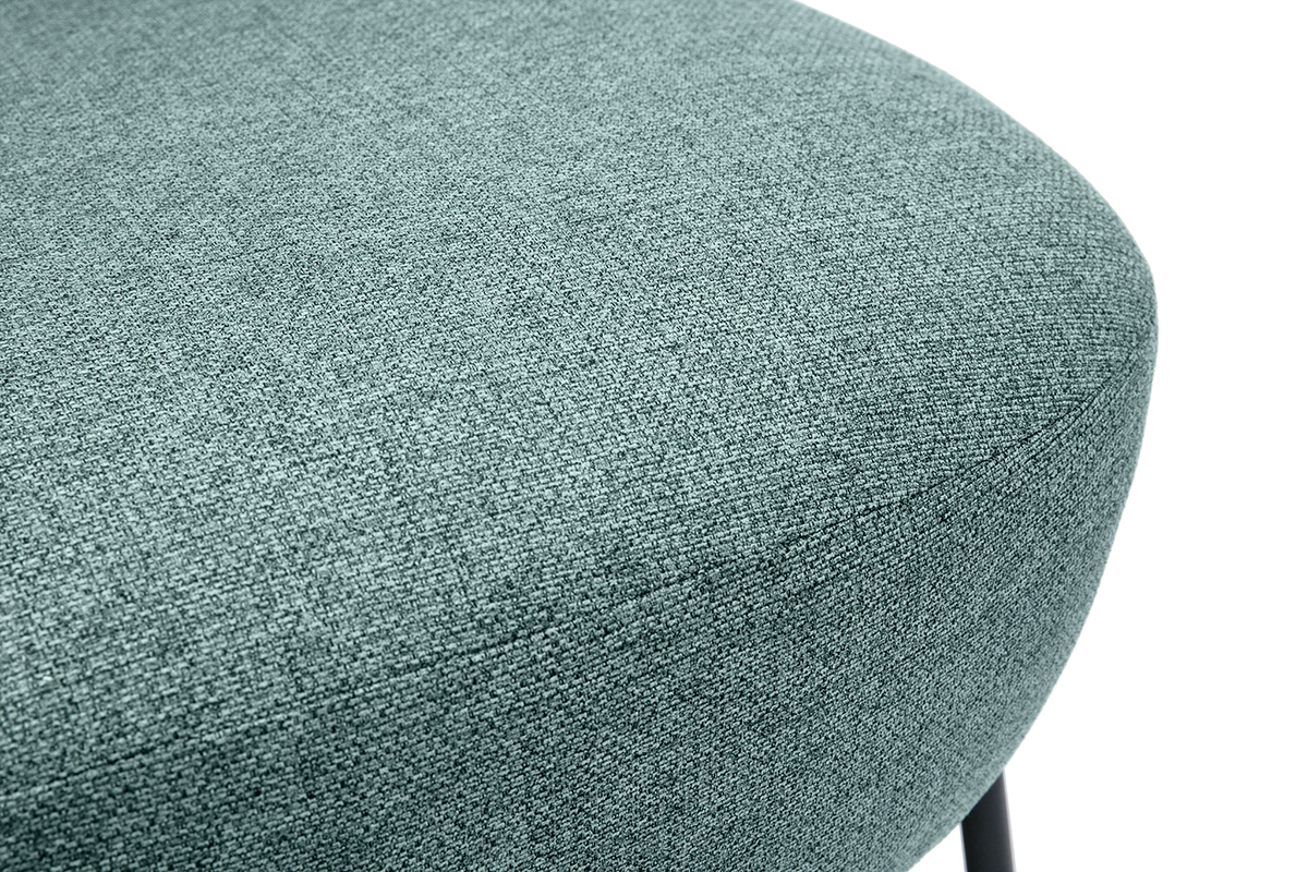 Non sans rappeler la forme d'un douillet cocon, dossier et assise, garnis d'une agréable mousse, forment en une seule pièce un siège accueillant et tout confort. L'ensemble habillé d'un revêtement en tissu vert de gris contraste élégamment avec l'aérien piètement en métal noir. Voilà un fauteuil rond et enveloppant que vous ne voudrez plus quitter !