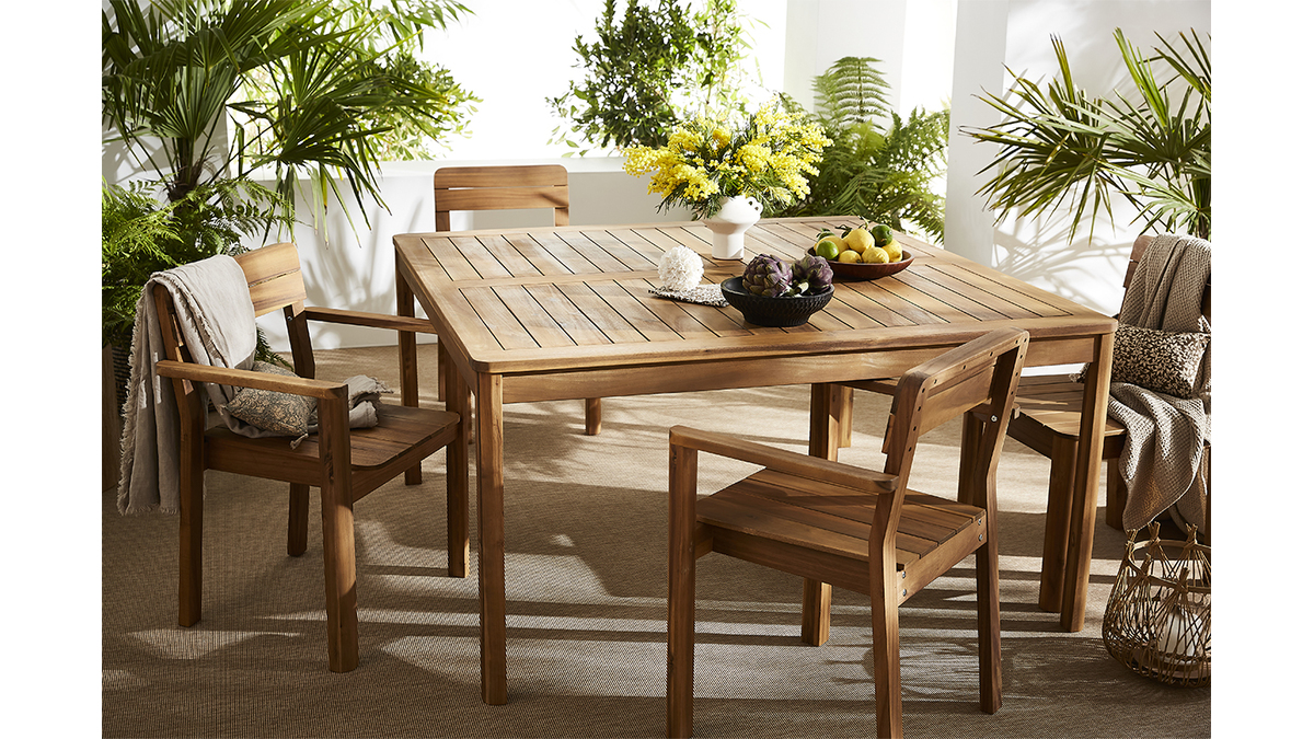 Entièrement conçue en acacia massif, provenant de forêts gérées durablement, la gamme de jardin AKIS conjugue confort et raffinement. Ses lignes douces et arrondies sont synonymes de modernité.