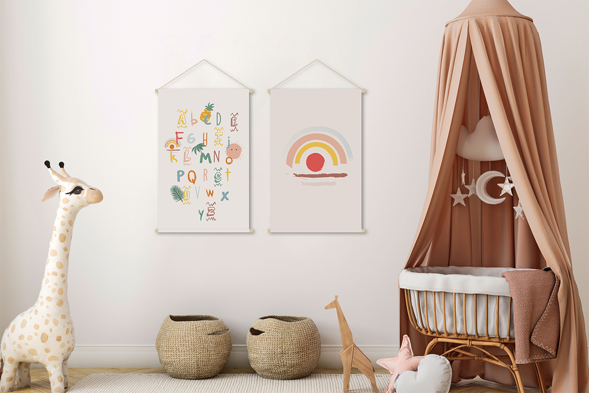 Grâce à ses petites dimensions (L40 x L60 cm), cette toile décorative à suspendre peut facilement être associée à d'autres kakemonos déco aux belles couleurs pastels. Vous créerez alors une composition unique qui donnera assurément beaucoup de cachet à la chambre !