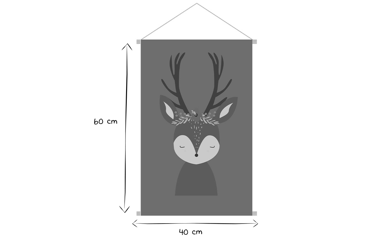 Sur fond vert kaki, cette biche couronnée de fleurs champêtres aux couleurs chatoyantes, apportera une touche authentique et enfantine dans une chambre ou une salle de jeux. Aussi apaisante qu'une balade dans un sous-bois et parfaitement adaptée à une ambiance douce et poétique, cette décoration murale enfant aura toute sa place aux côtés du lit de votre petit rêveur... De quoi plonger les kids dans un conte enchanteur !