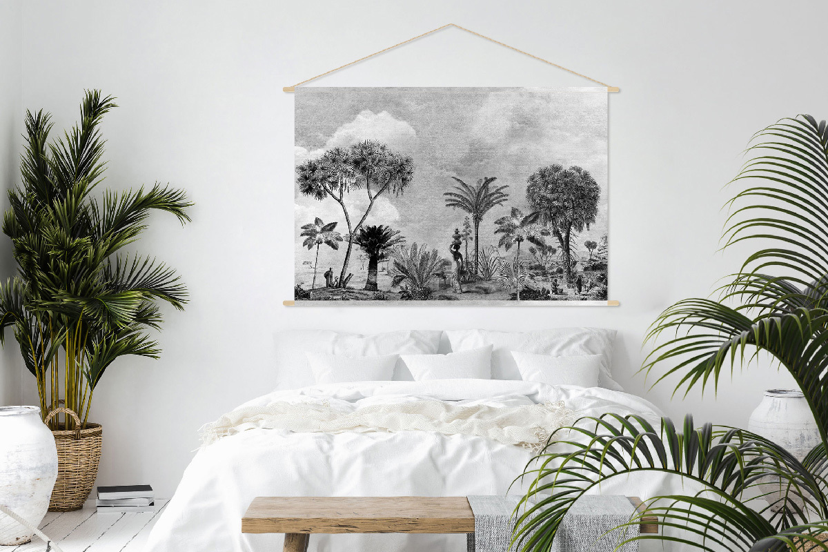 Impression sur toile canvas (100% coton), baguettes en pin maritime certifiées PEFC, corde naturelle, cette décoration murale pratique et facile à installer prend ses marques dans vos pièces de vie avec légèreté et en un tournemain.