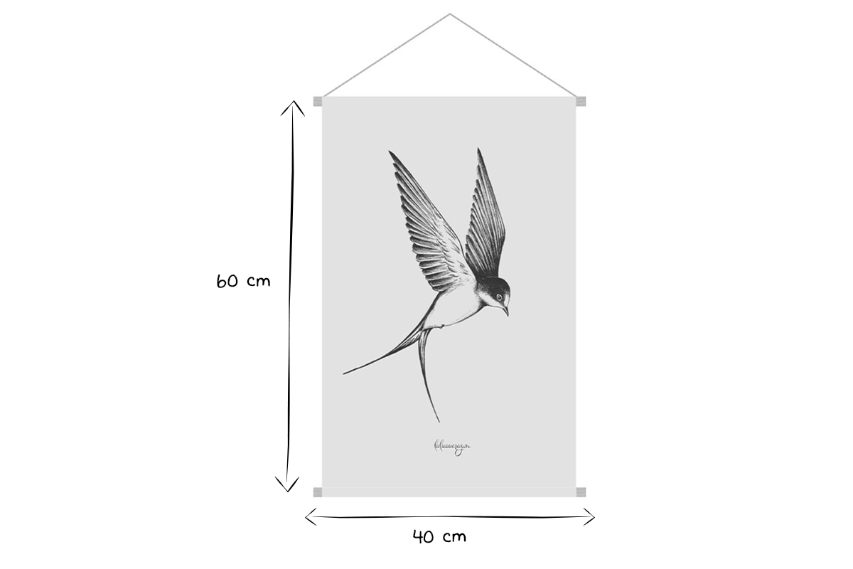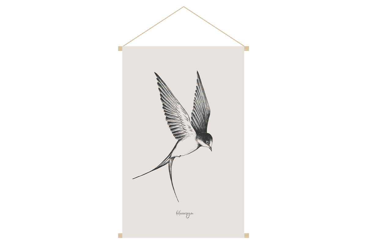Formidable support pour embellir un pan de mur, le kakemono LIBERTY habille délicatement la pièce et lui insuffle un esprit très chaleureux. Avec une belle hirondelle dessinée tout en finesse et en précision, il invite le printemps dans votre intérieur toute l'année. Vous serez captivé par la justesse des détails et les jolis jeux de contraste dont fait preuve cette illustration pleine de poésie...