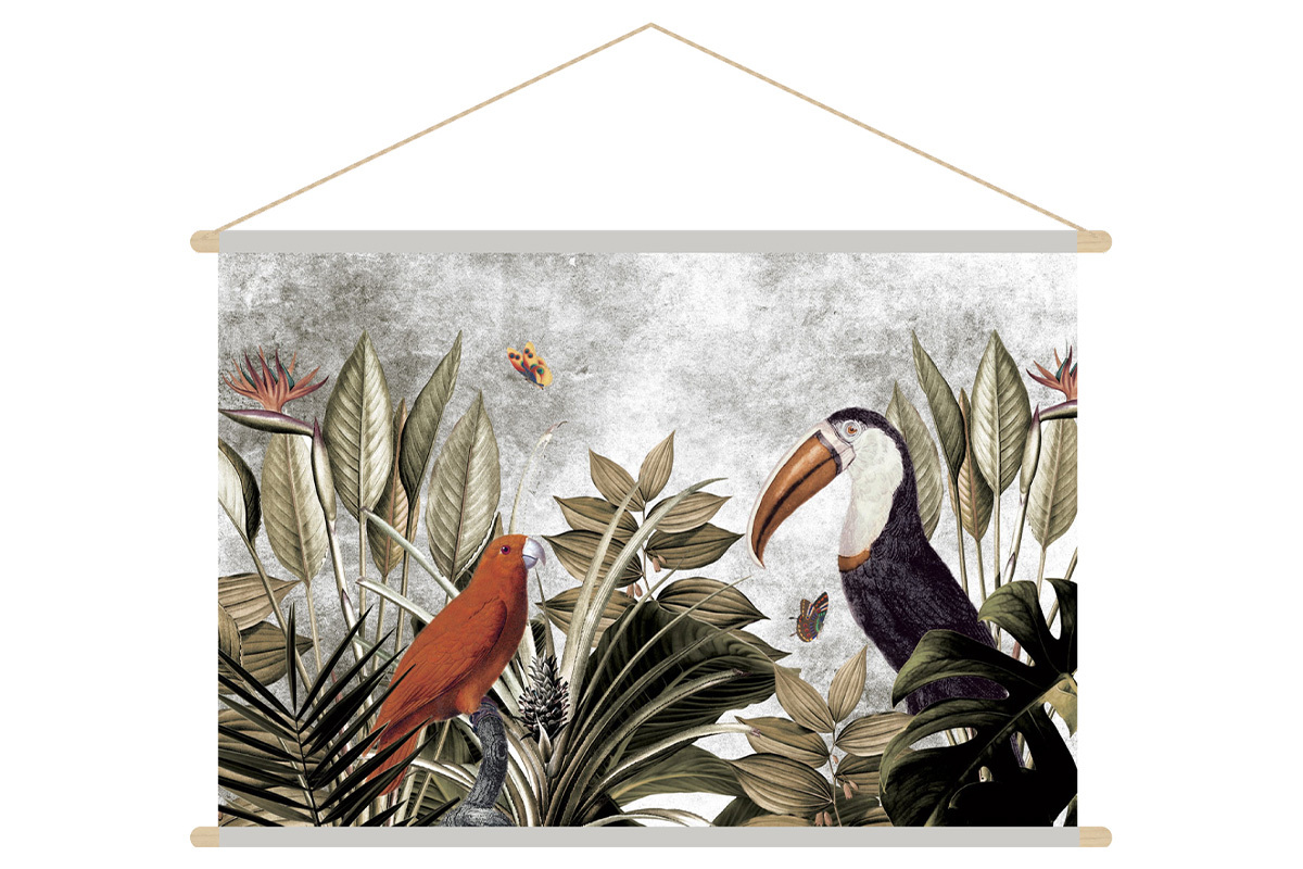 Le kakemono PASSARO apporte une touche d'exotisme dans votre intérieur. Oiseaux tropicaux et végétation luxuriante se confondent... tout est là pour vous transporter vers la faune et la flore tropicale !