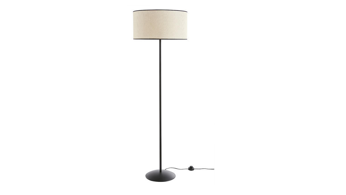 Lampadaire ZETA livré avec un câble électrique (longueur 150 cm) en plastique noir équipé d'un interrupteur. Fonctionne avec une ampoule type E27 (60 watts maximum) non fournie.