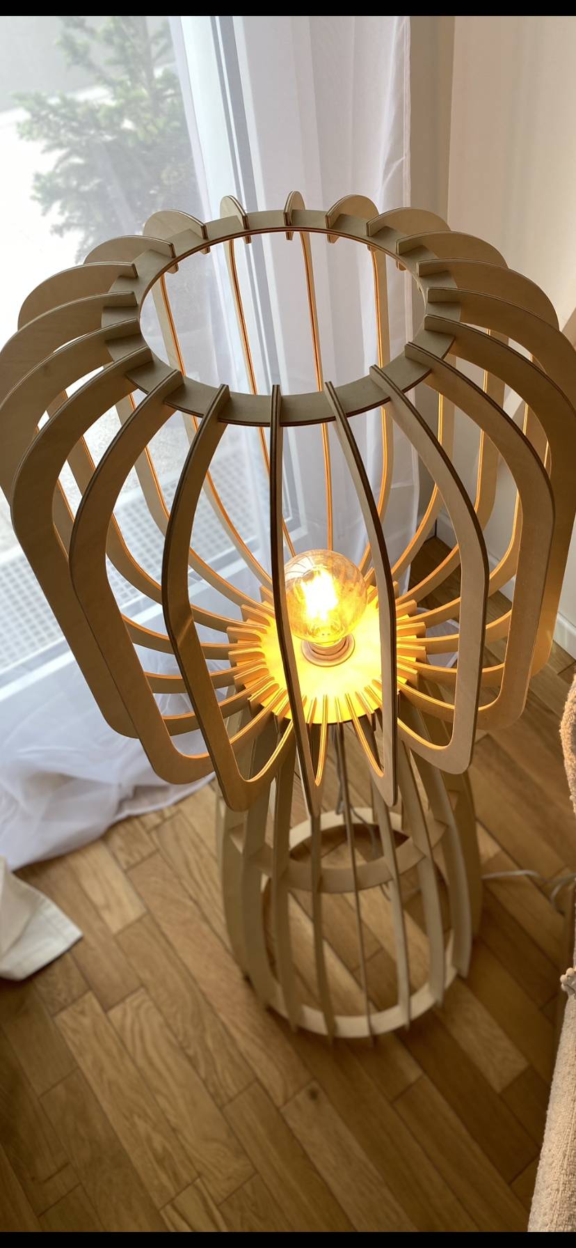Ce lampadaire est constitué de plusieurs lattes en bois et liège contrecollé pour un rendu naturel et chaleureux. C'est un matériau idéal pour un intérieur de style authentique. Pour apporter une touche cosy à un salon, une entrée ou une chambre à coucher, on dispose ce lampadaire dans la pièce qu'on accompagne d'un beau tapis.
