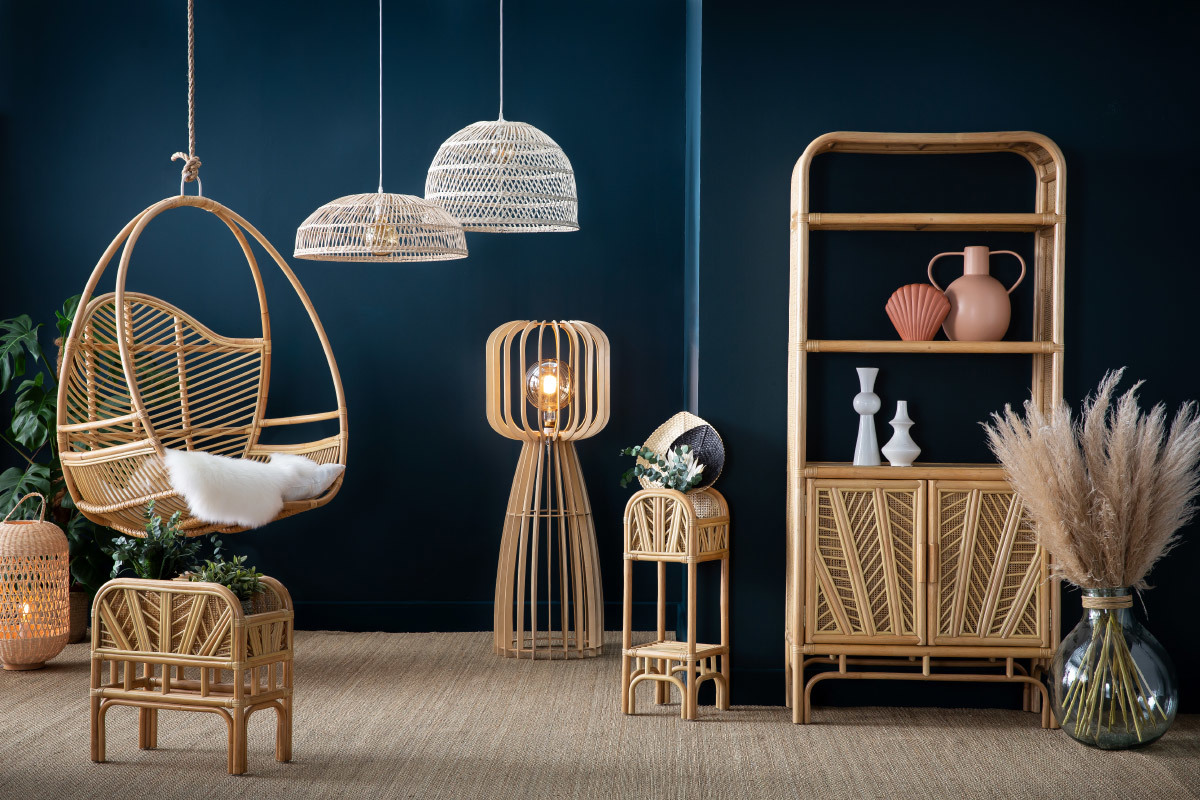 D'une hauteur de 125 cm, le lampadaire FIJI vous offrira un joli jeu de lumières sur tous les murs de la pièce. On s'aménage un intérieur naturel et plein de charme en l'accompagnant de la suspension assortie FIJI.