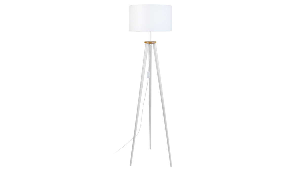 Le lampadaire TRIPOD est disponible en trois coloris : bois naturel/blanc, bois blanc/blanc ou bois noir/noir.