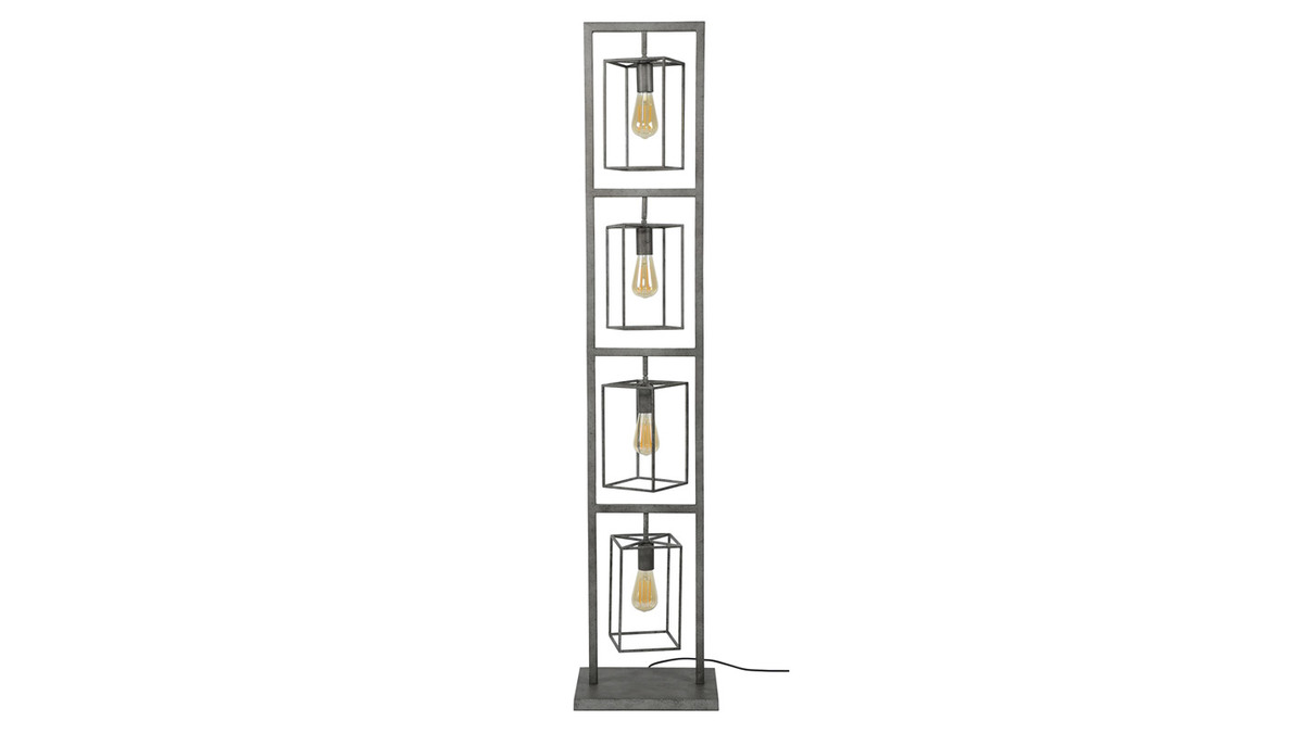Muni de quatre lampes, il assure un éclairage efficace dans toute la pièce ainsi qu'une touche rétro si vous y placez des ampoules vintage. Ce lampadaire à la croisée des styles est résolument contemporain, chic et dans l'air du temps car il reprend les codes du style industriel avec les cadres autour des ampoules, tout en offrant une sobriété harmonieuse propre au design moderne.