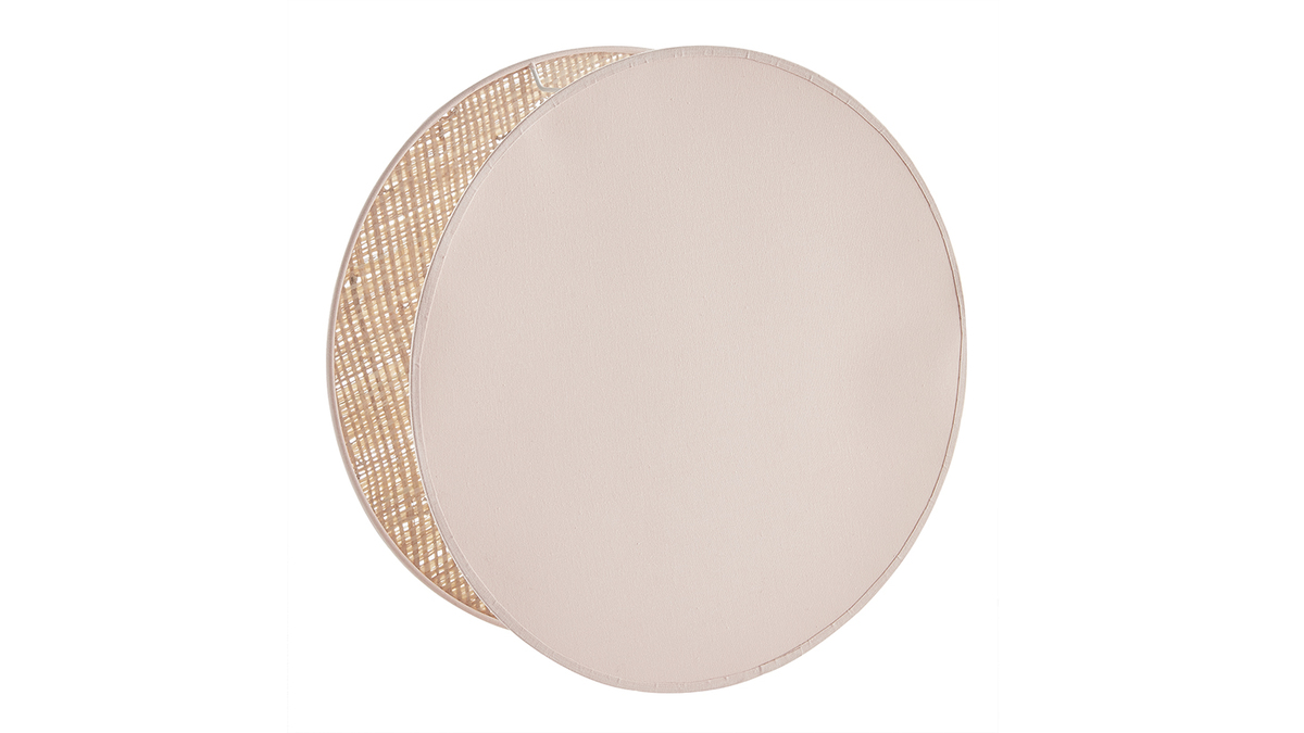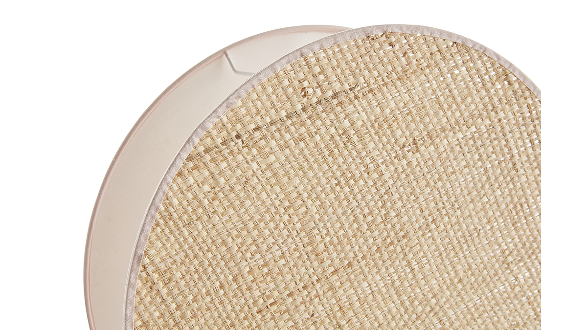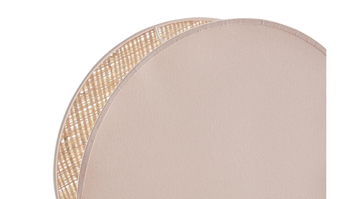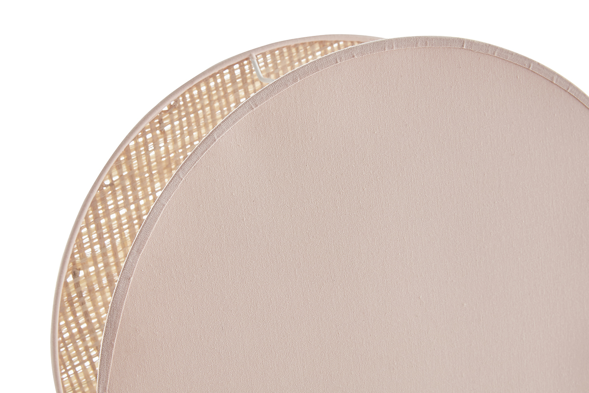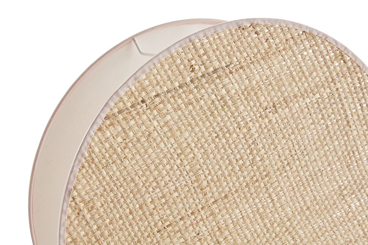 Lampe à poser ronde bi-matière en tissu rose clair et rabane naturelle D35 cm VERSO