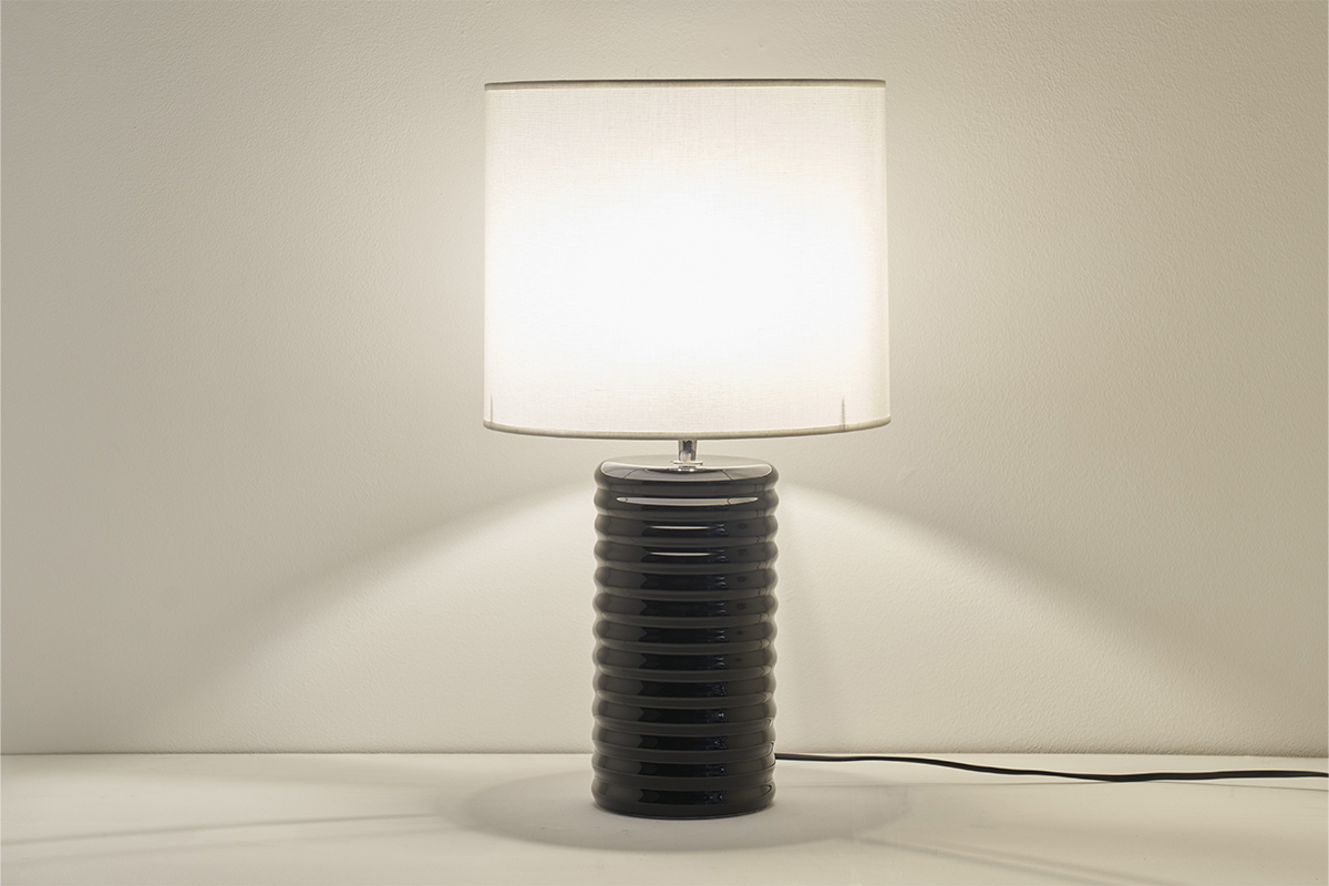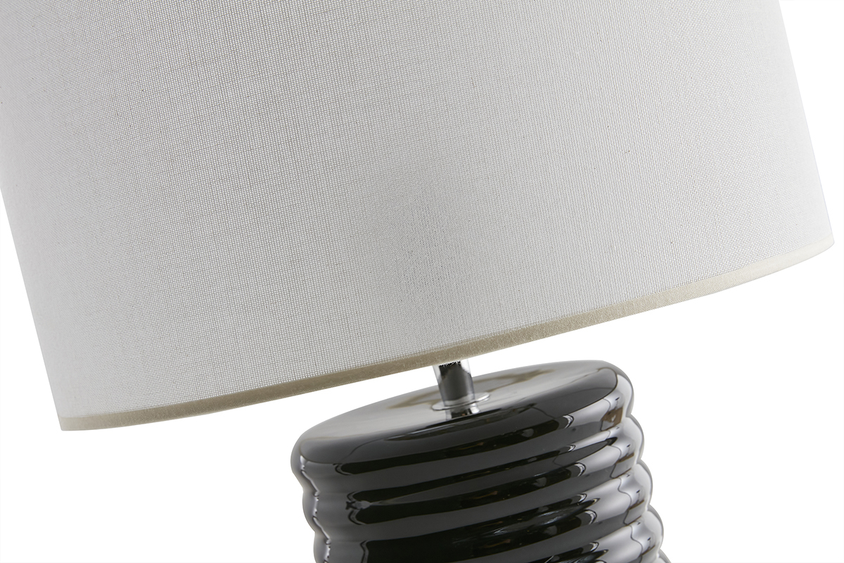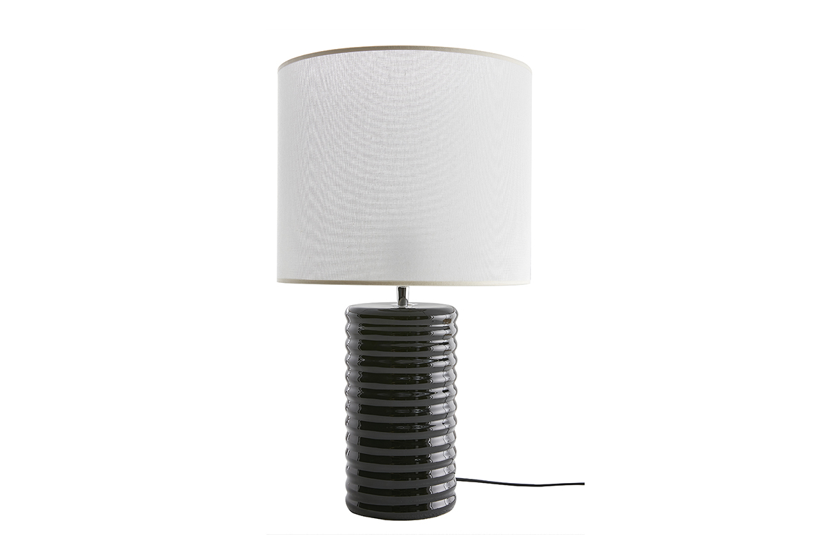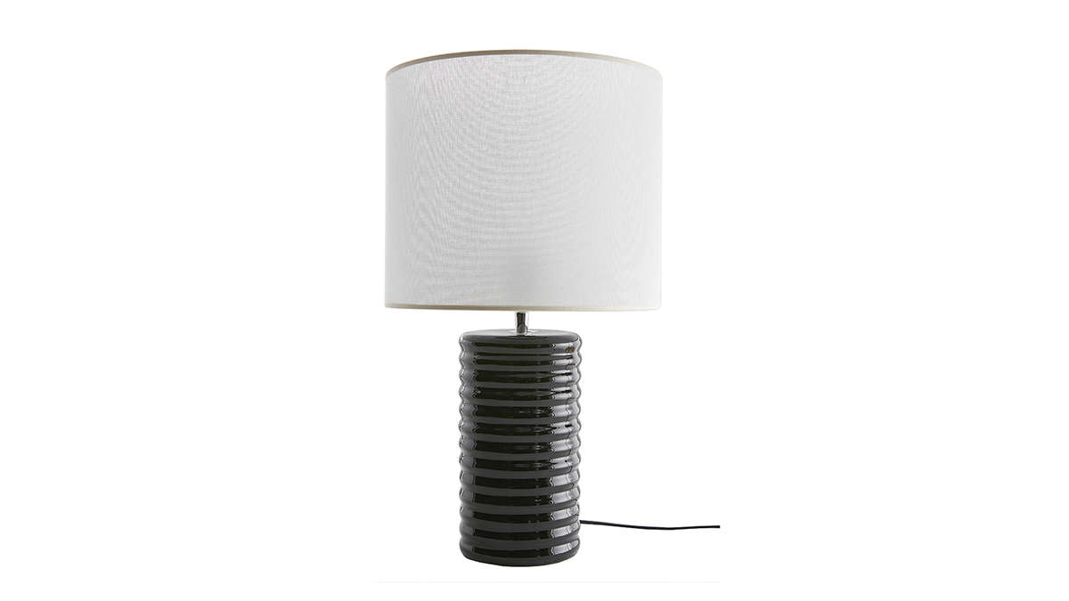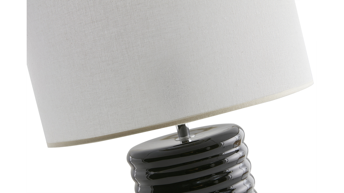 Coiffée d'un abat-jour cylindrique en coton écru bordé d'un liseré naturel, sa base élancée en céramique émaillée se pare d'une intense couleur noir : un tandem du plus bel effet ! La lumière est principalement orientée vers le haut et filtrée également à travers l'abat-jour créant une atmosphère reposante et feutrée.