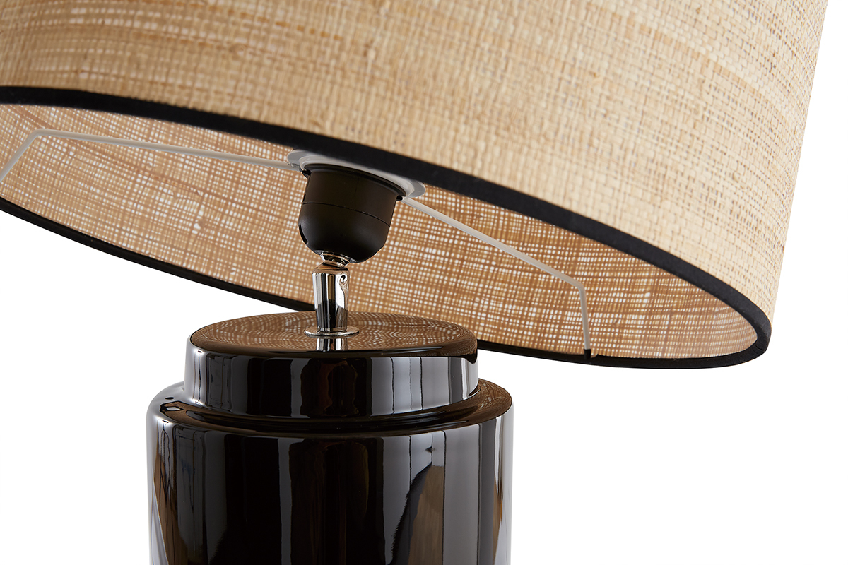 Lampe à poser en céramique émaillée noire et abat-jour en raphia naturel H64 cm MAJES