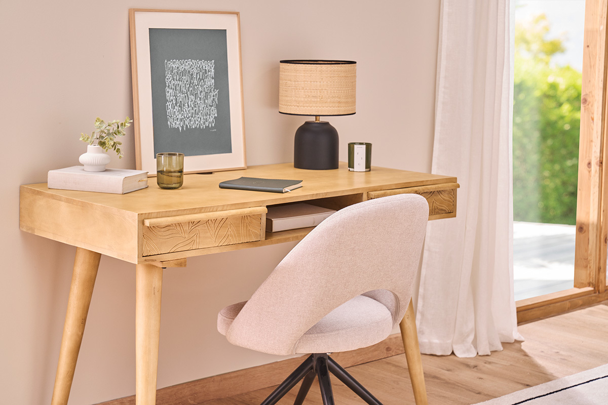 Grâce à la fibre naturelle de son abat-jour, ROCHA procure une lumière tamisée idéale pour créer une ambiance hyper chaleureuse dans vos pièces de vie.