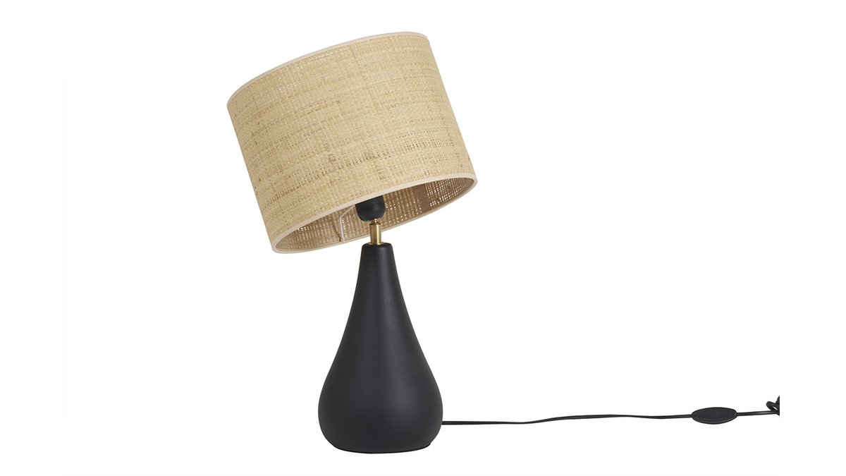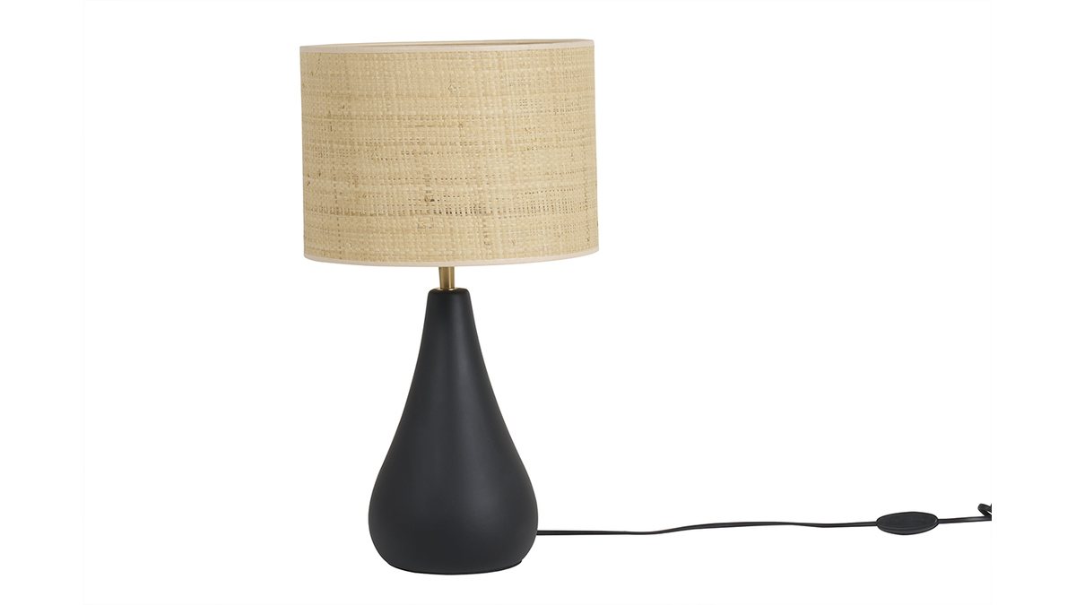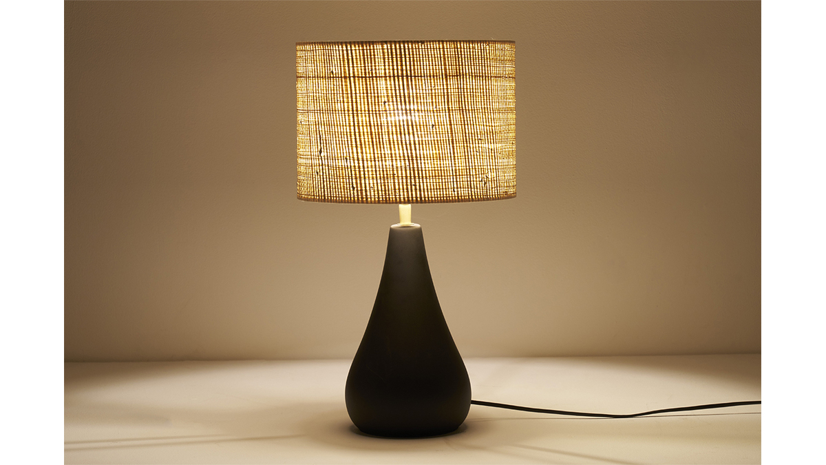 Ce qui caractérise cette belle lampe décorative, c'est d'abord sa base en céramique noire aux lignes organiques. Avec son abat-jour en raphia, on aime la manière dont cette lampe à poser fabriquée au Portugal joue avec les matières ! Mi-trendy mi-authentique, PYRUS est un bel accessoire déco au look unique.