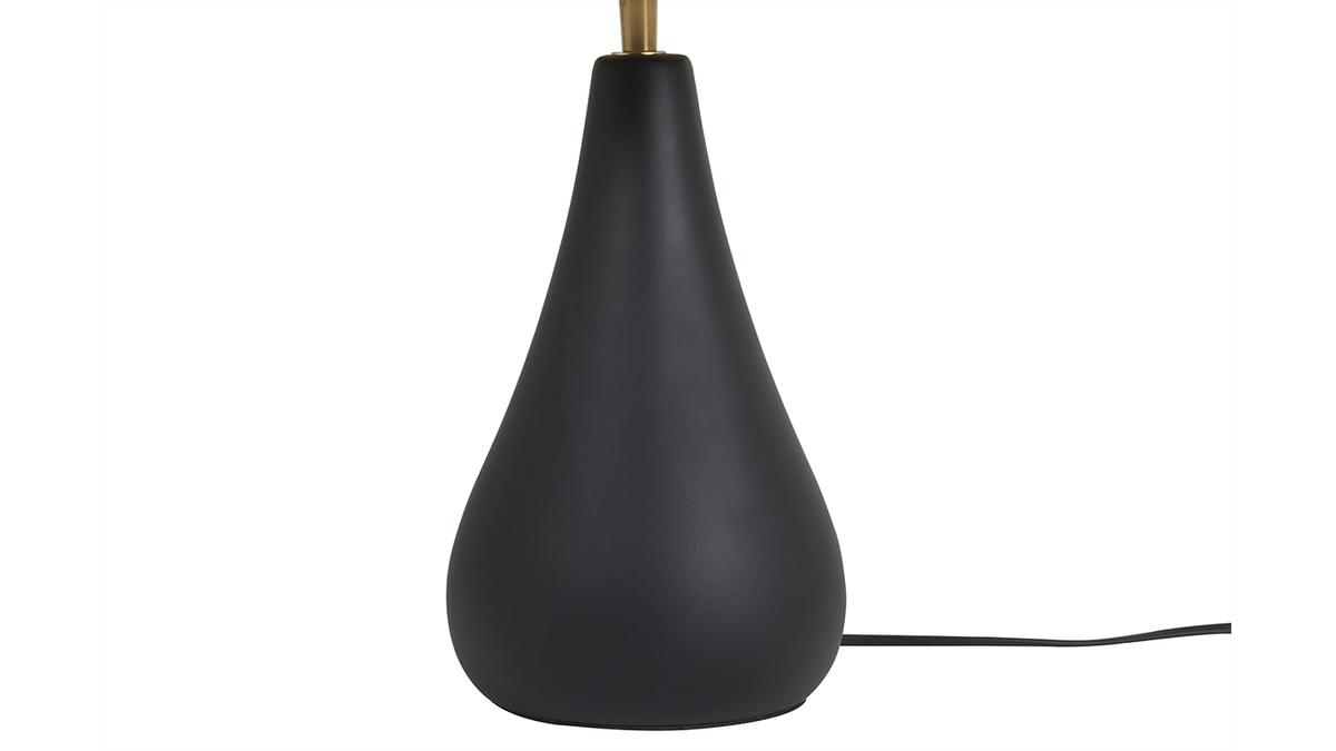 Lampe à poser noire livrée avec un câble électrique en plastique (L2 m) équipé d'un interrupteur. Fonctionne avec une ampoule type E27 (puissance 7watts Led) non fournie.