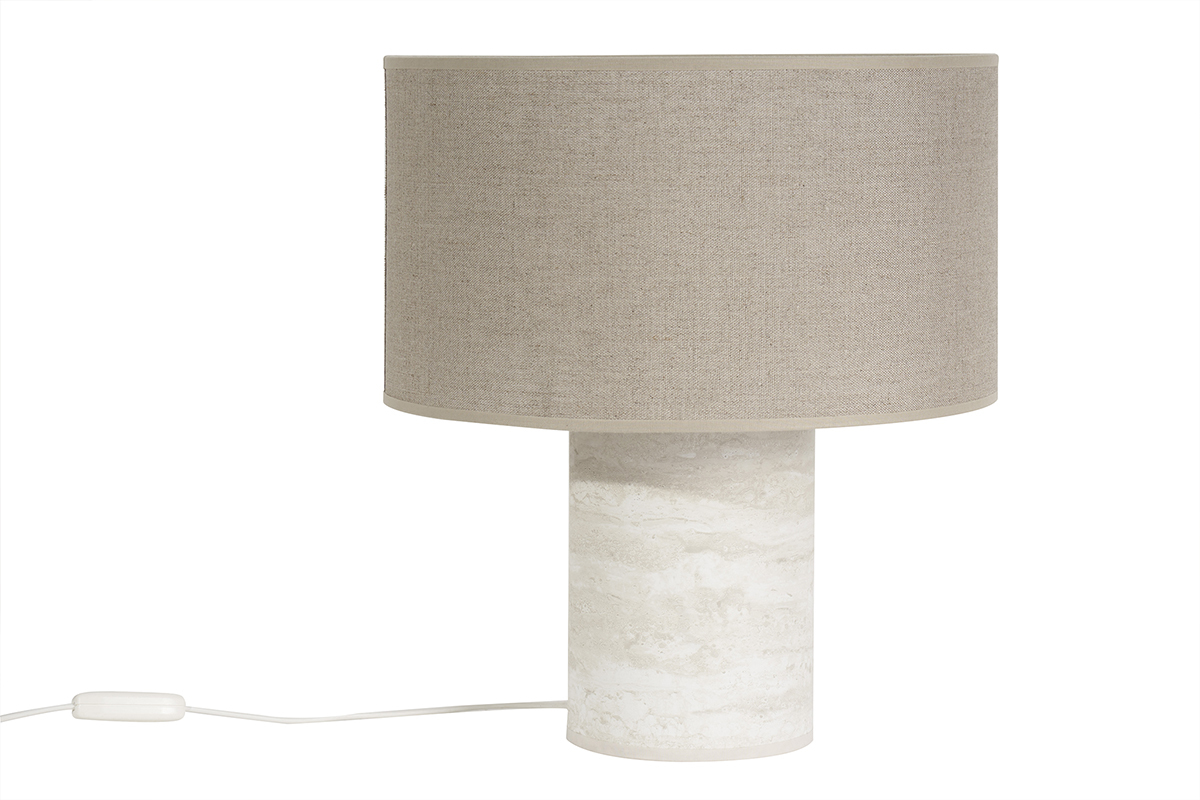 Sans aucun doute, cette petite lampe de table brille par son mariage harmonieux de textures. Son pied cylindrique imite à la perfection l'aspect du travertin : une pierre ultra prisée pour ses tons allant du beige, blanc ou crème. Elle associe à ravir ce pied d'apparence rocheux à un abat-jour en lin teinté d'une délicate couleur beige. Grâce à lui, cette lampe déco diffusera une lumière douce, agréable et enveloppante.