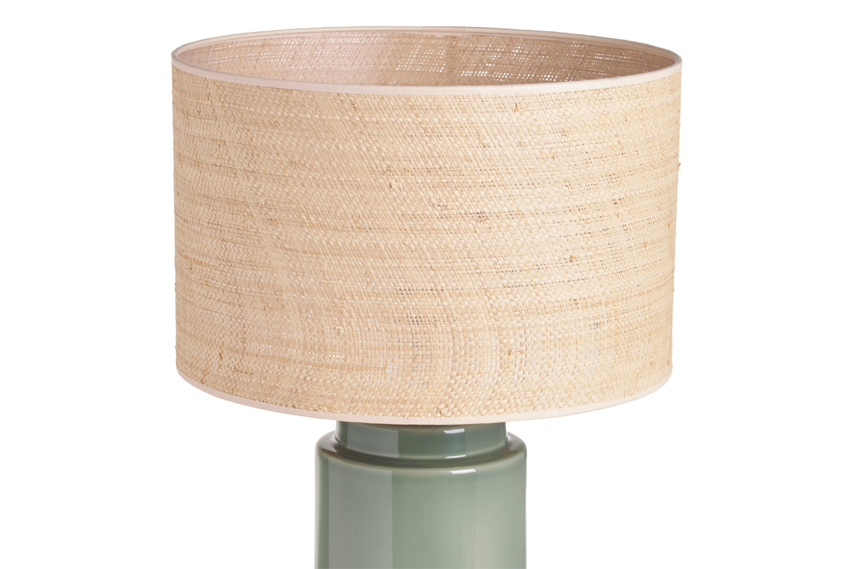 Lampe à poser verte en céramique et abat-jour en rabane H64 cm MAJES