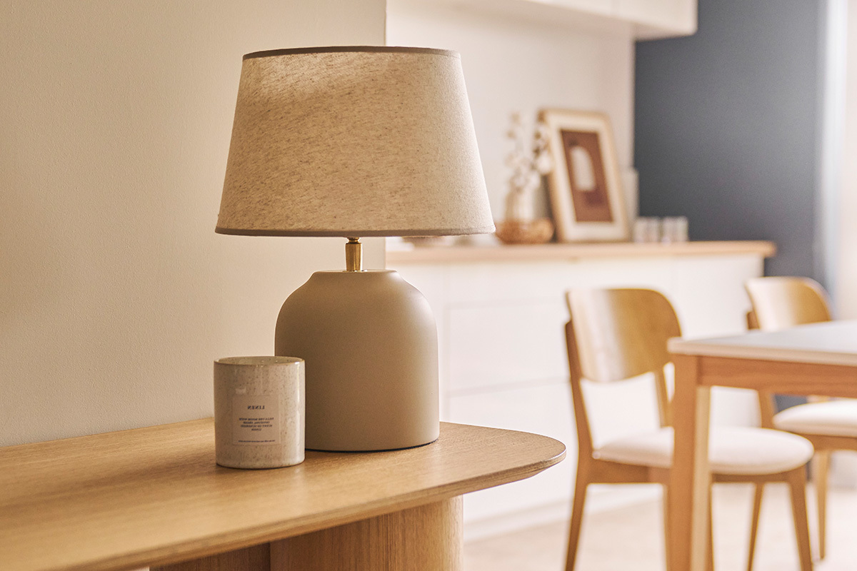 En complément d'un éclairage principal, les rayons filtrés par l'abat-jour en tissu lin beige offre une belle lumière tamisée. Lampe de chevet pour vos moments de lecture, lampe d'appoint pour délimiter une entrée ou encore lampe de bureau pour éclairer votre plan de travail. SIMAO s'exporte dans toute la maison ! Parfaite pour participer activement à une ambiance chaleureuse et intimiste, et envelopper l'espace d'une douce quiétude...