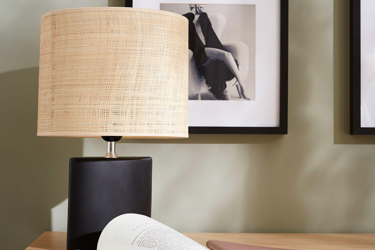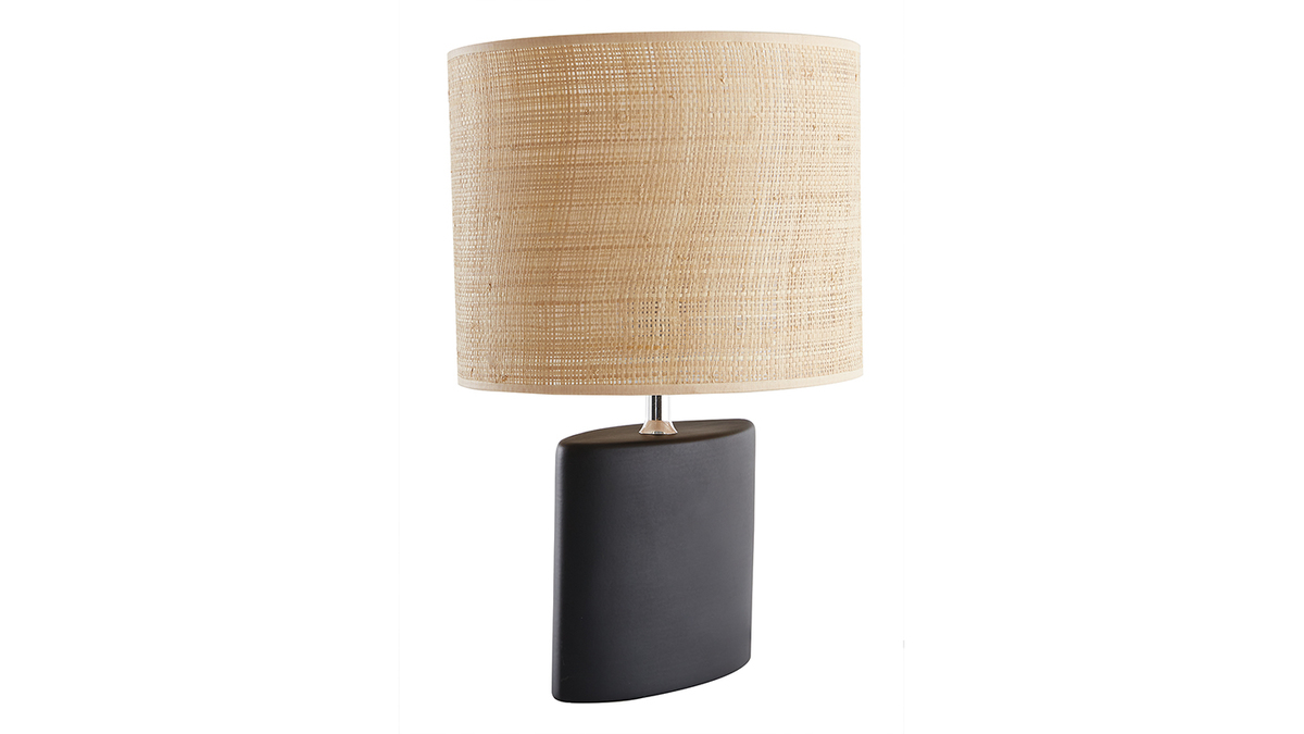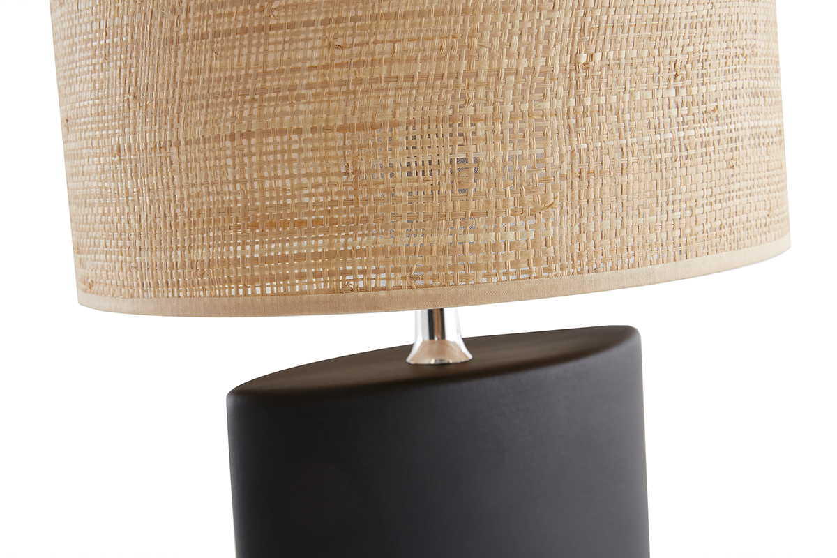 Ici, la base elliptique en céramique noire mat tranche avec un abat-jour cylindrique, dont les biais en coton naturel se fondent au raphia texturé. Des matières naturelles et un élégant jeu de couleurs qui apporteront chaleur et authenticité à votre intérieur. Pour le plus grand bonheur des amateurs de déco ethnique chic, sa silhouette s'intégra volontiers dans un intérieur mêlant mobiliers exotiques et souvenirs de voyages...