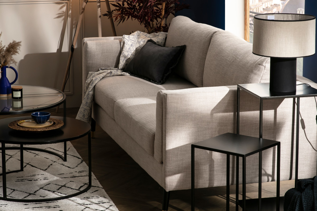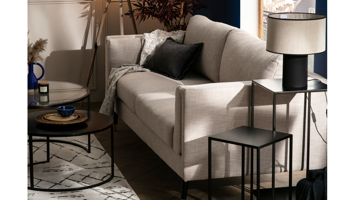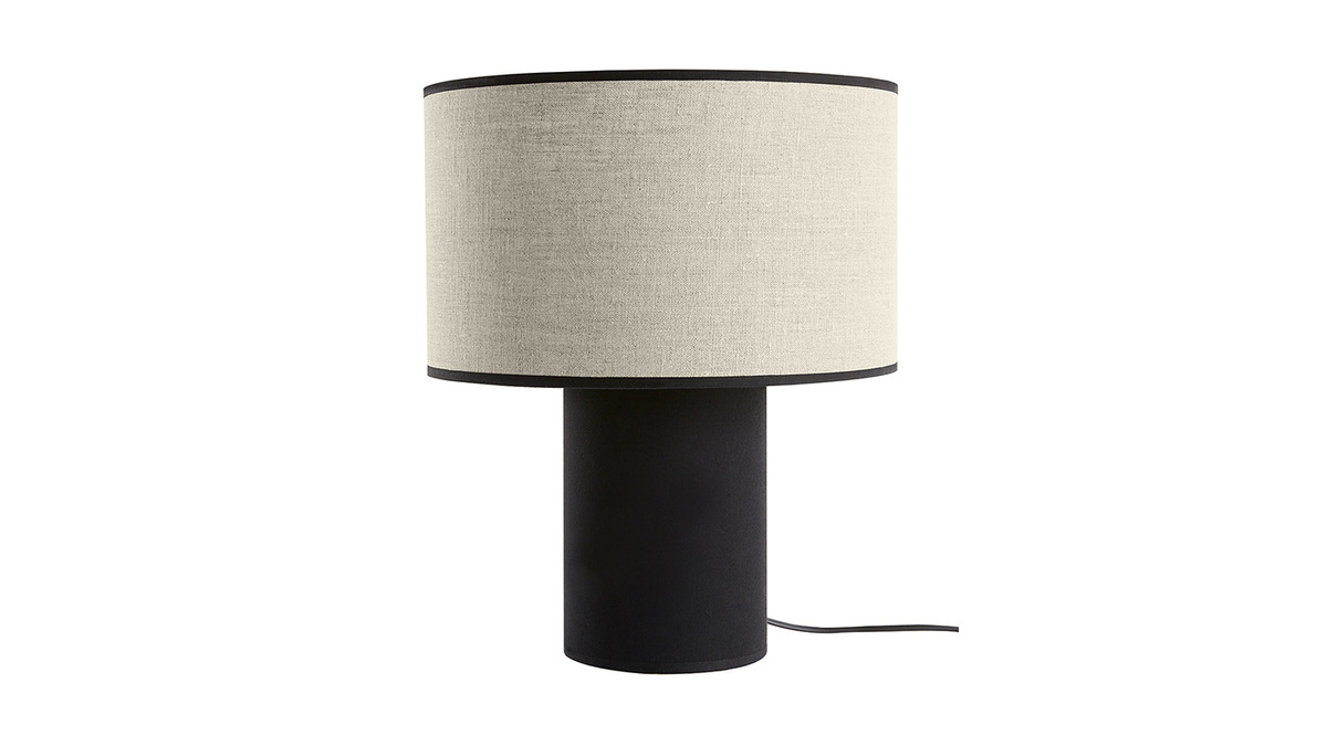 Abat-jour en lin naturel, cylindre et biais en coton noir : aucun doute, cette lampe à poser fabriquée en France nous charme par son joli contraste de couleurs sobres et de matières chaleureuses !
