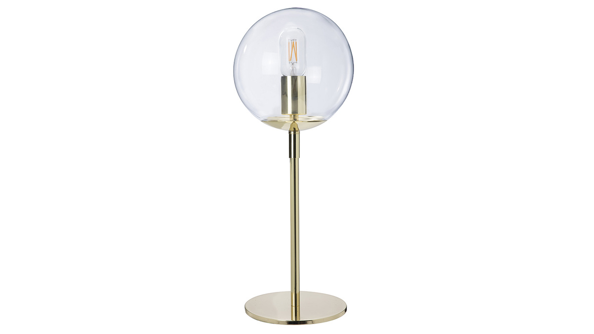 Avec sa structure en métal doré, cette lampe évoque les métaux précieux et leur finesse. Cette teinte chic associée à un globe rond en verre et une base circulaire en fait un véritable petit bijou qui donnera à la pièce une touche déco raffinée.