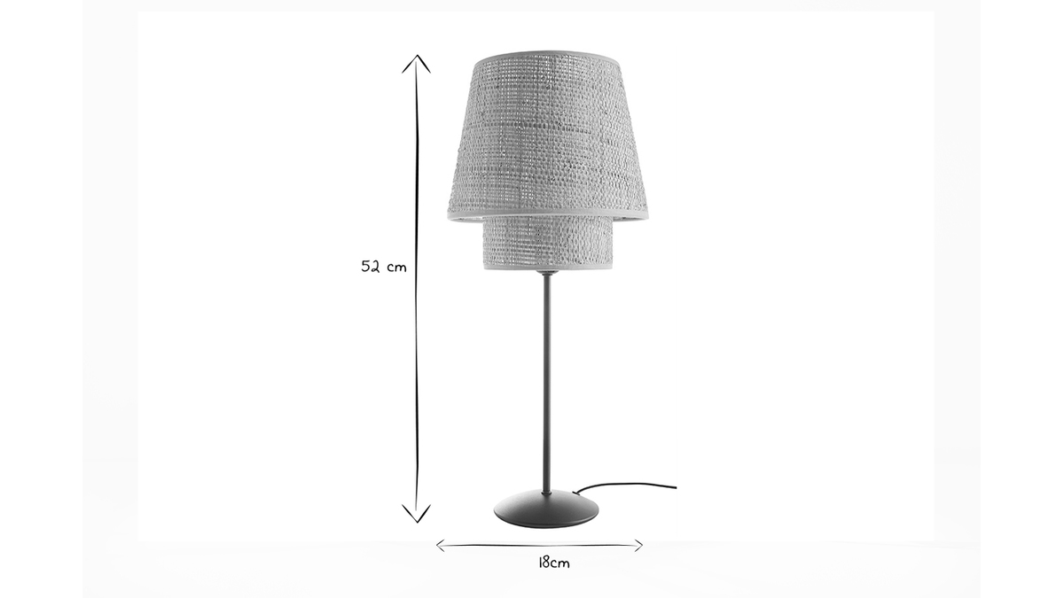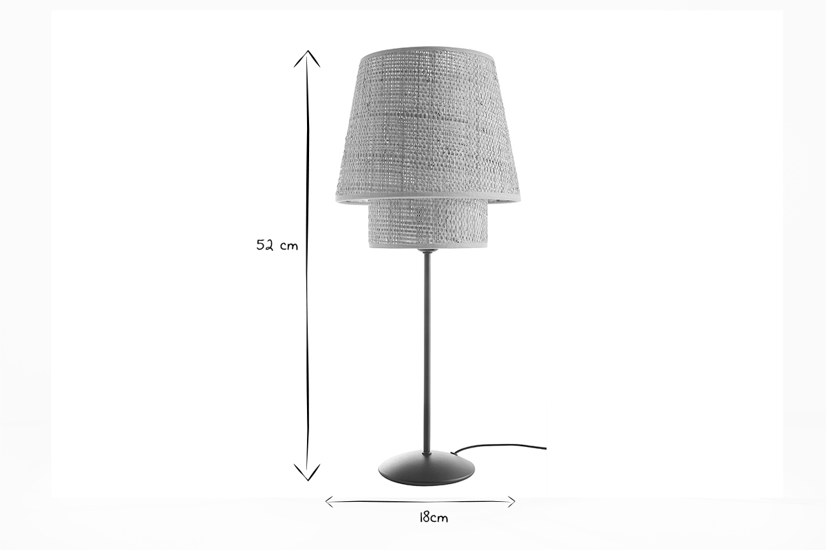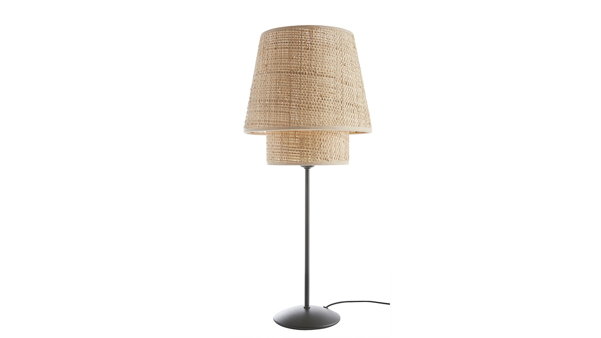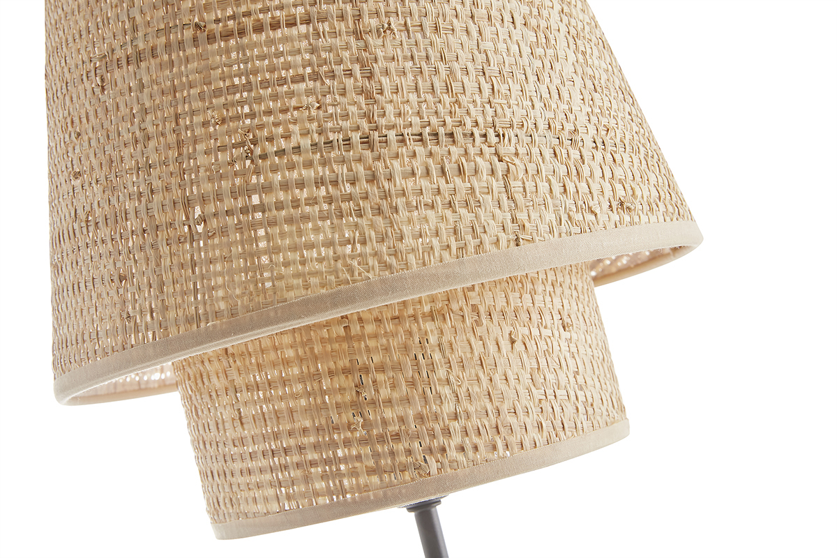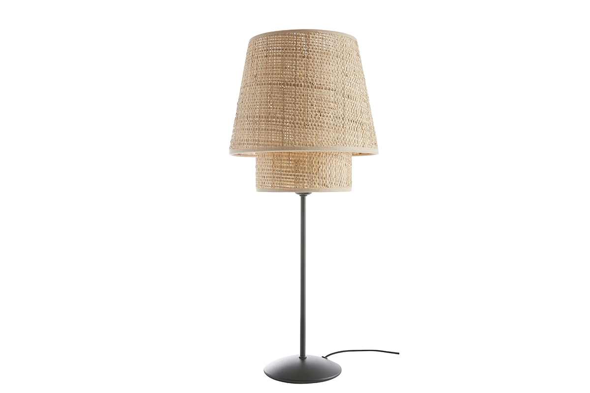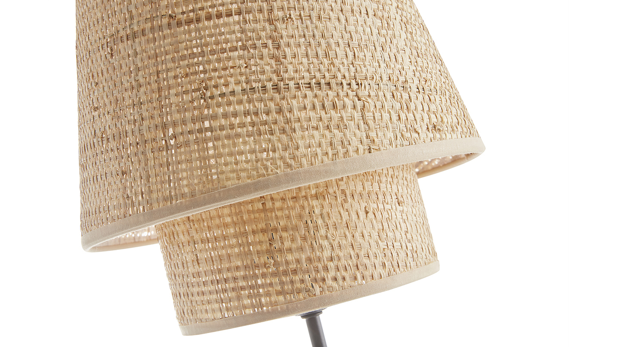 Habillée de rabane - une matière naturelle qui filtre la lumière tout en douceur - cette lampe à poser à la silhouette organique s'inscrit comme un élément déco intemporel que l'on aime pour sa douceur et son authenticité innées. Elle repose sur un long pied fin en métal noir, de quoi apporter une jolie touche moderne à l'ensemble !