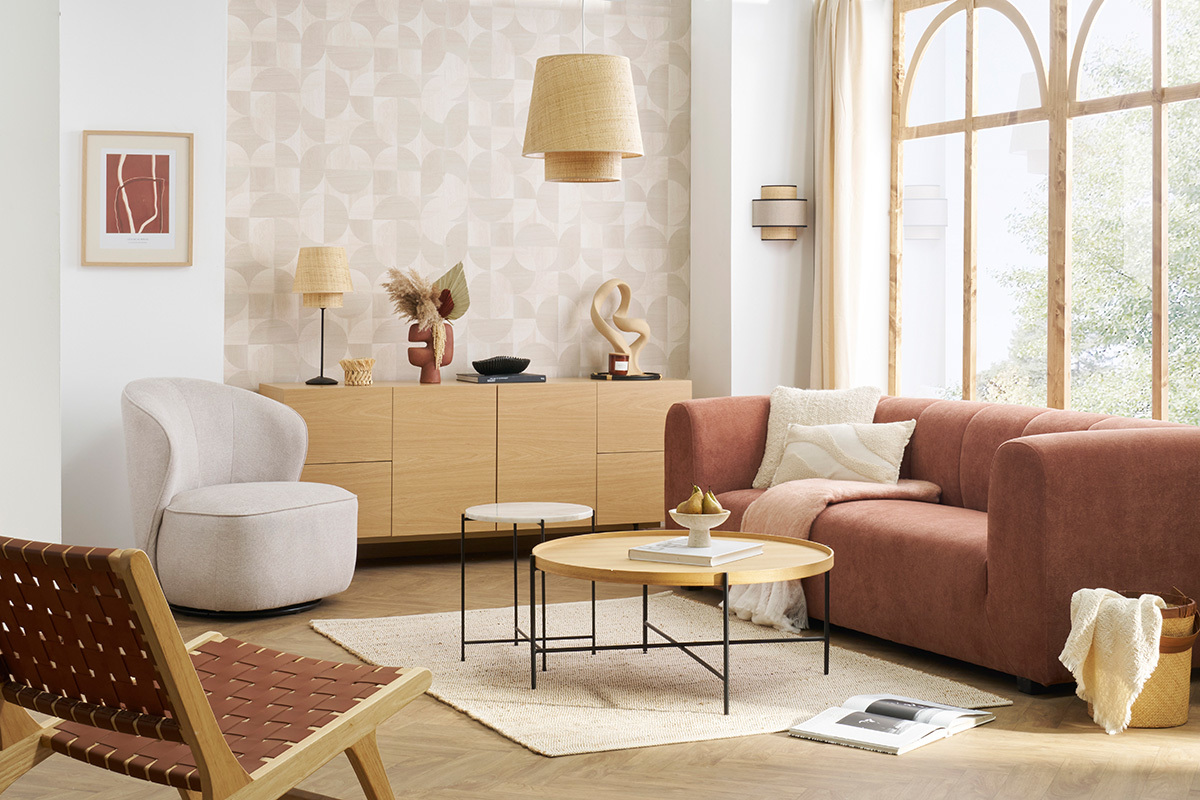 Imaginée par les designers Miliboo, toute la beauté de JUME réside sur son bel abat-jour naturel composé de deux éléments arrondis superposés.