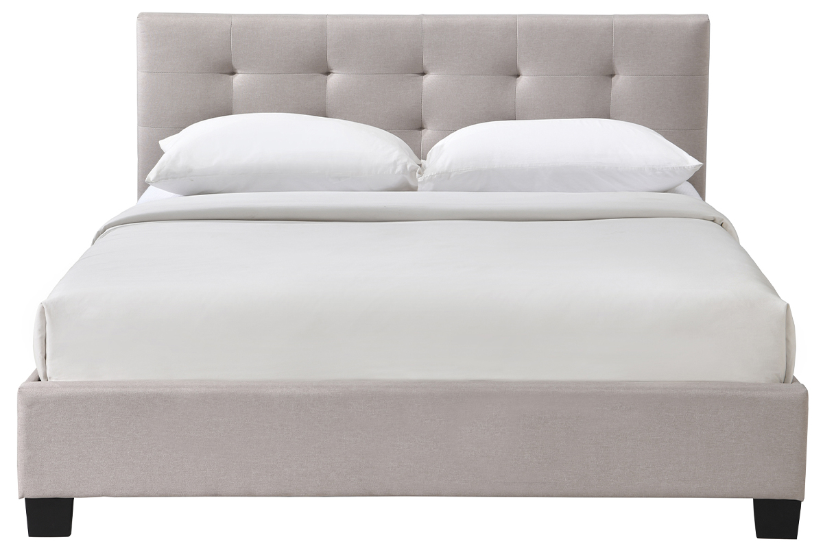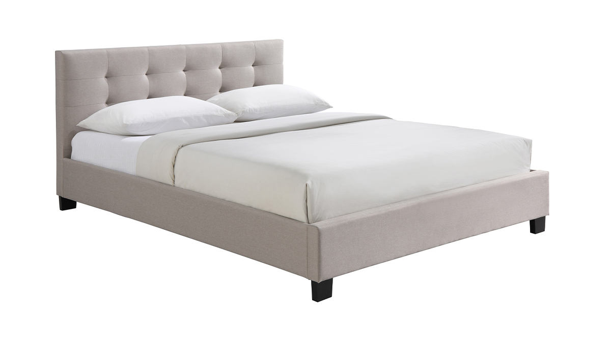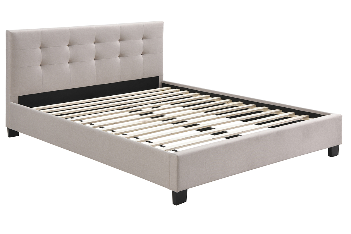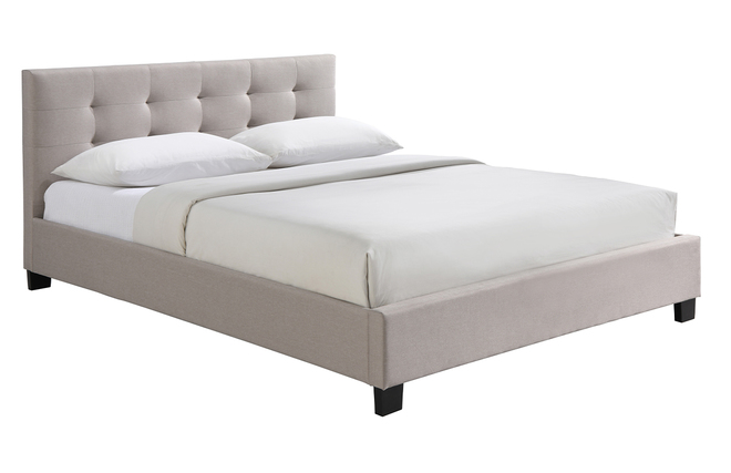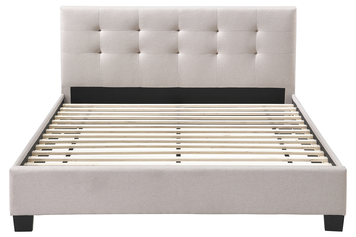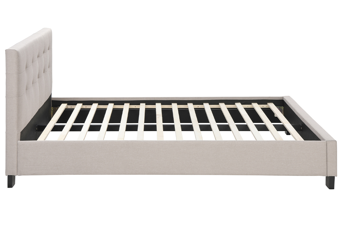 Ce lit queen size habillé d'un revêtement en tissu lin beige est un vrai cocon agréable et raffiné. Confortable dossier, sommier à lattes en bois arquées, pour assurer une distribution uniforme du poids du corps sur toute la surface sans provoquer d'affaissement, ce lit double a été pensé pour votre confort !
