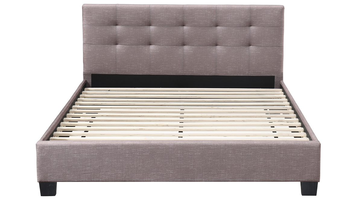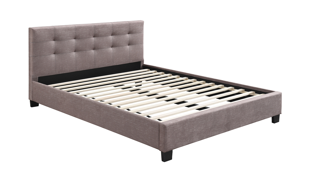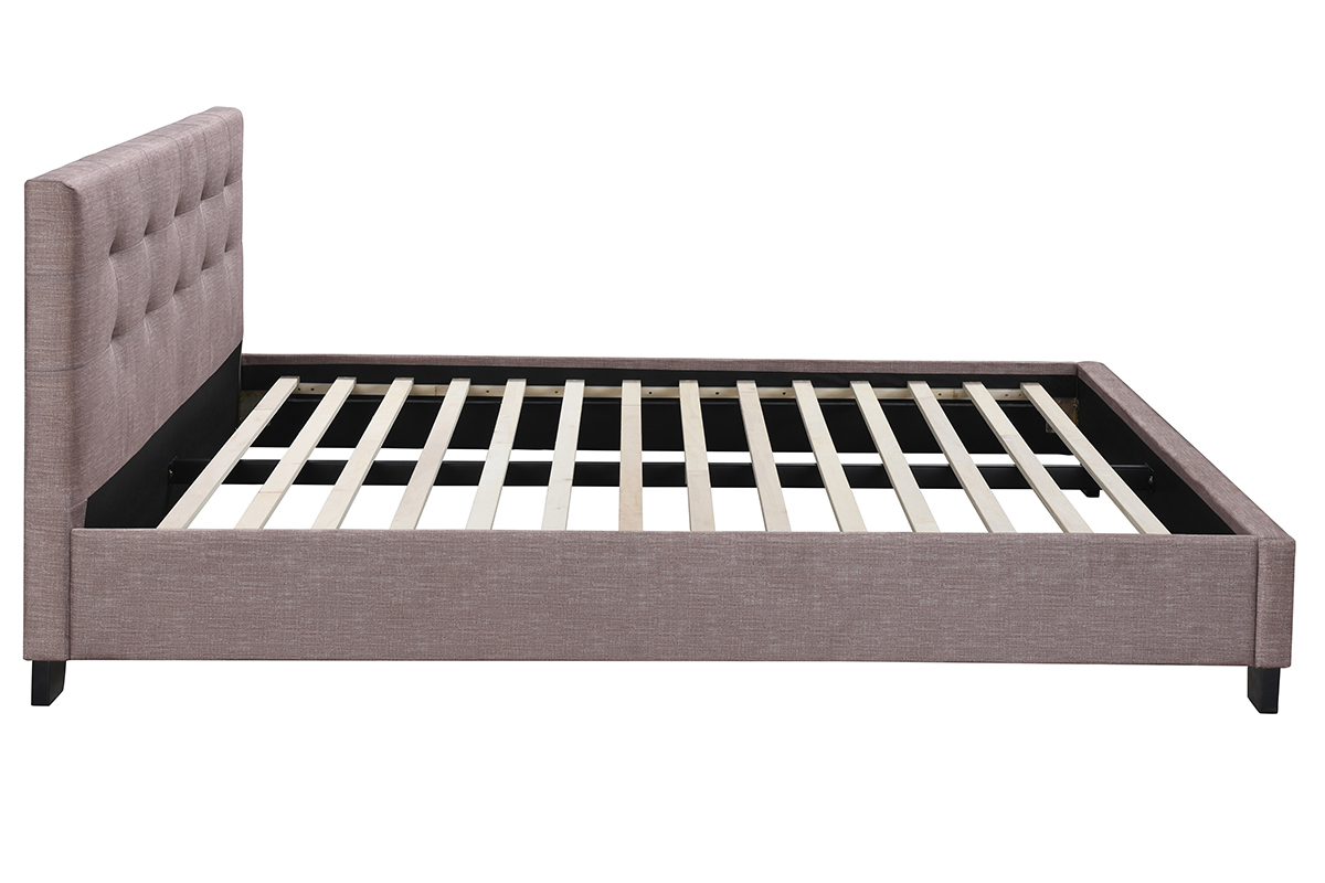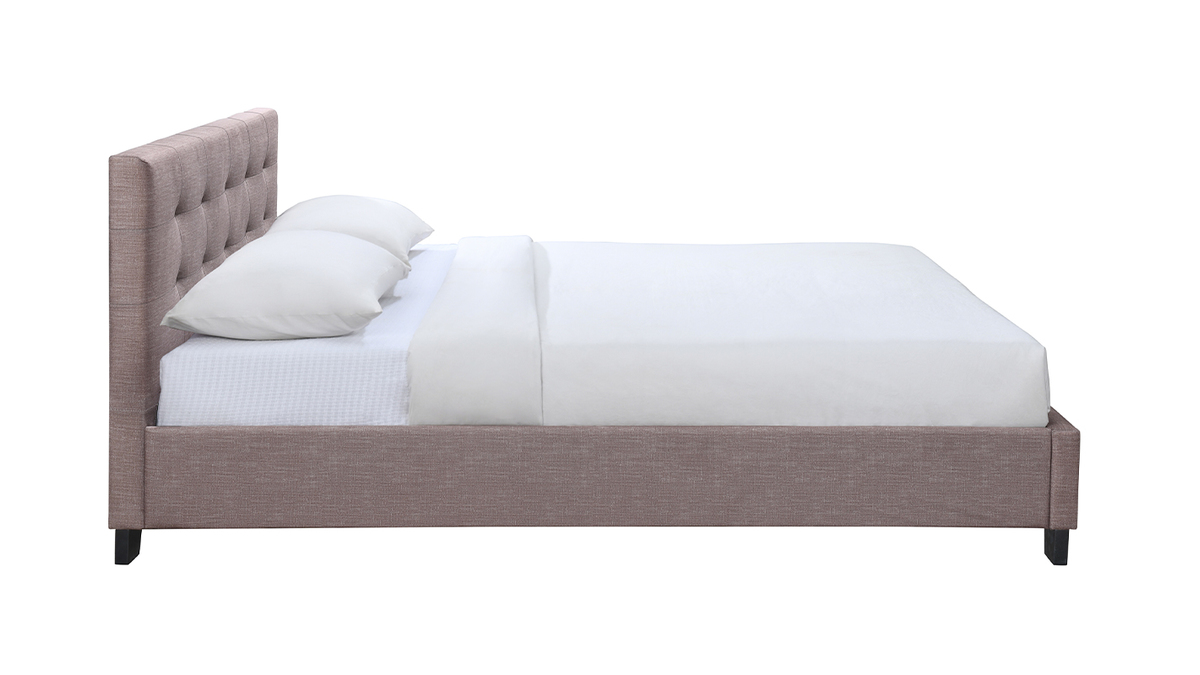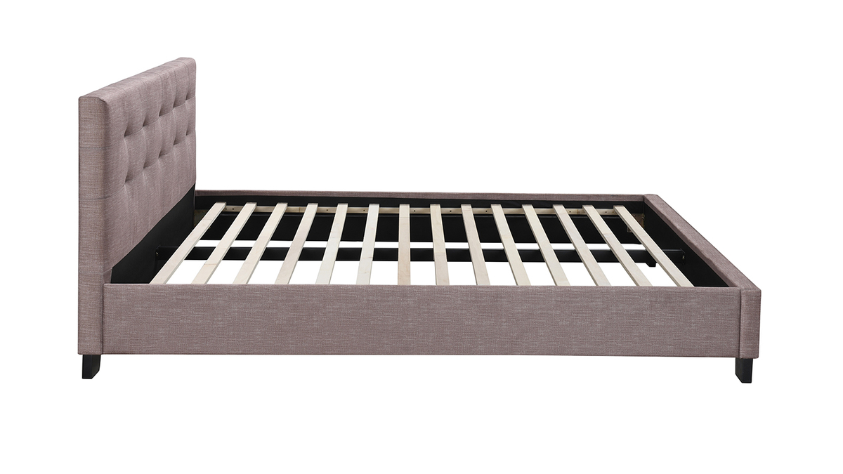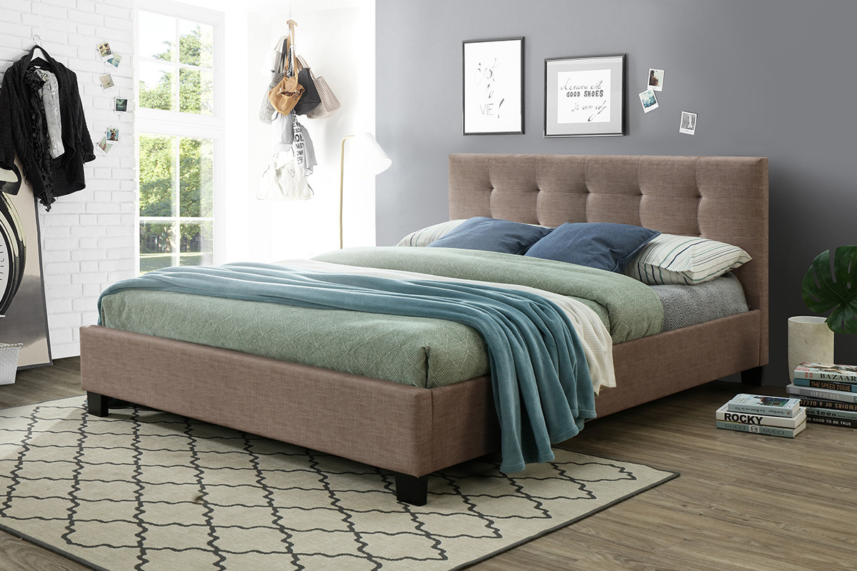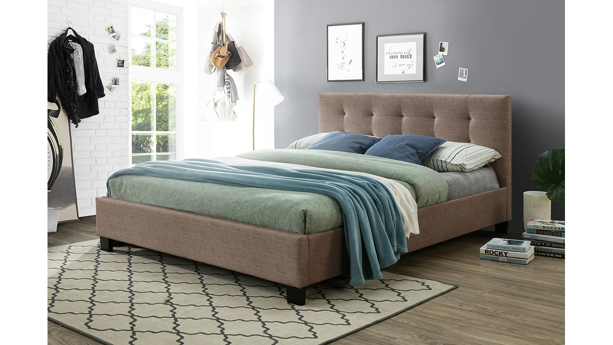 Ce lit queen size habillé d'un revêtement tissu camel (100% polyester) est un vrai cocon agréable et raffiné. Confortable dossier, sommier à lattes en bois, pour assurer une distribution uniforme du poids du corps sur toute la surface sans provoquer d'affaissement, ce lit double a été pensé pour votre confort !