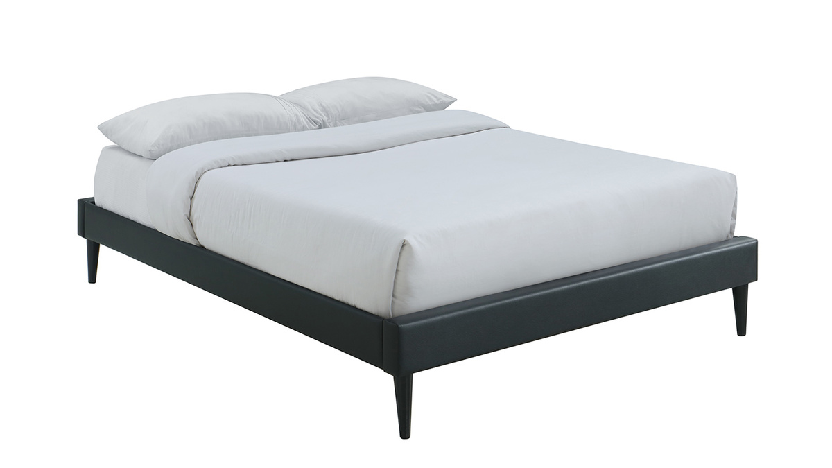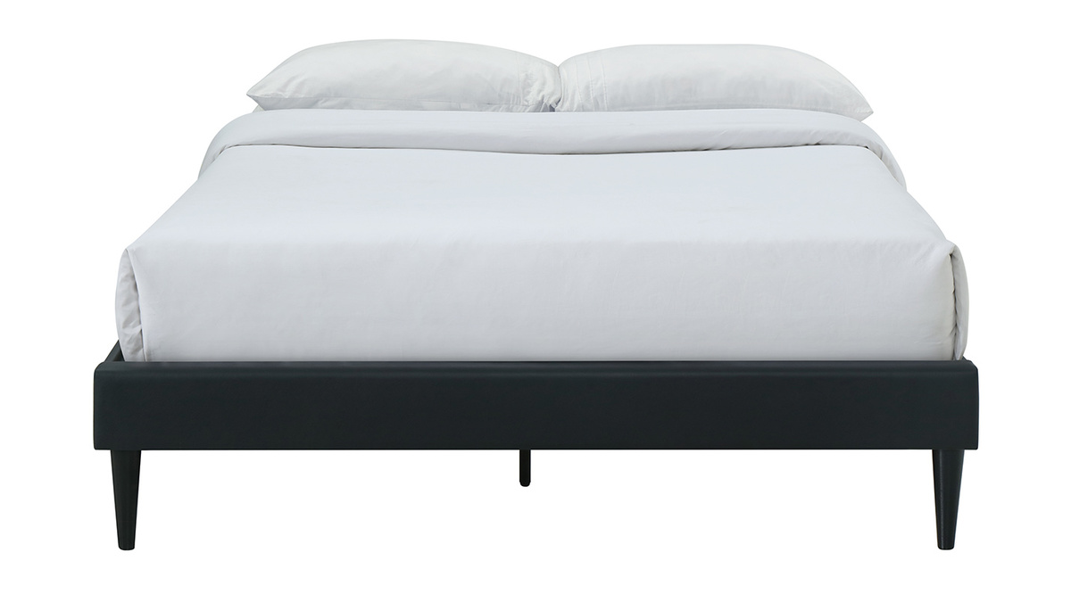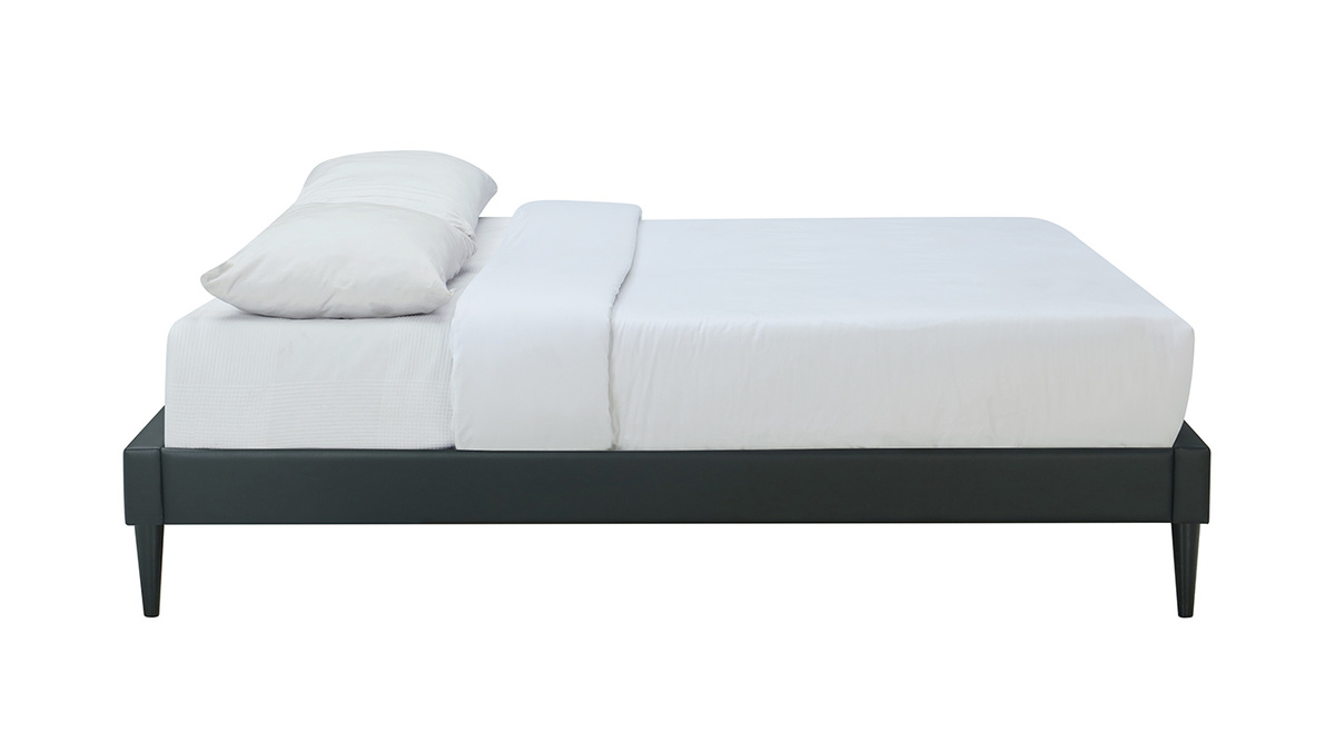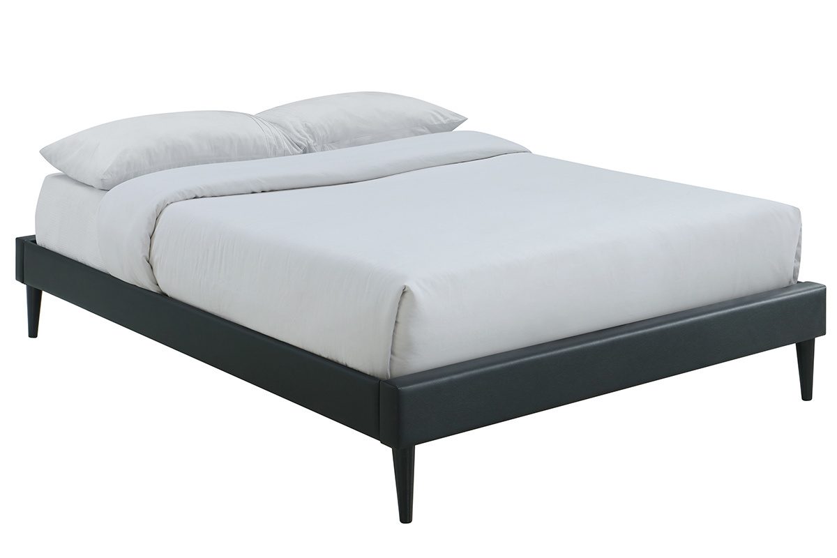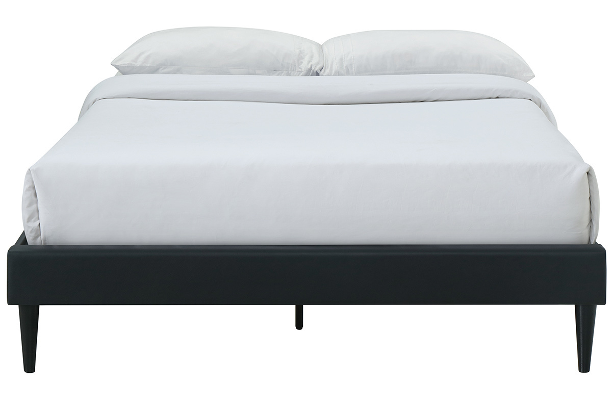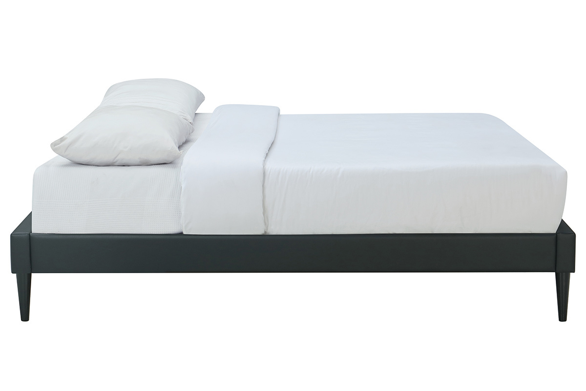 Lignes minimalistes, revêtement polyuréthane, pieds en bois massif... Ce lit 2 places est un modèle discret qui ne manque pas de charme. Il est idéal pour s'aménager la chambre dont on a toujours rêvé et laisser libre court à sa créativité ! En associant le polyuréthane noir et le bois teinté noir - un duo monochorme ultra tendance - à une forme épurée, ce lit double permet de jouer sur les accessoires pour se construire un espace nuit personnalisé. Adossé à un mur coloré ou accompagné d'une tête de lit originale, ce lit noir donnera vie à toutes vos envies déco.