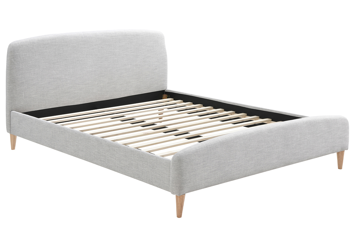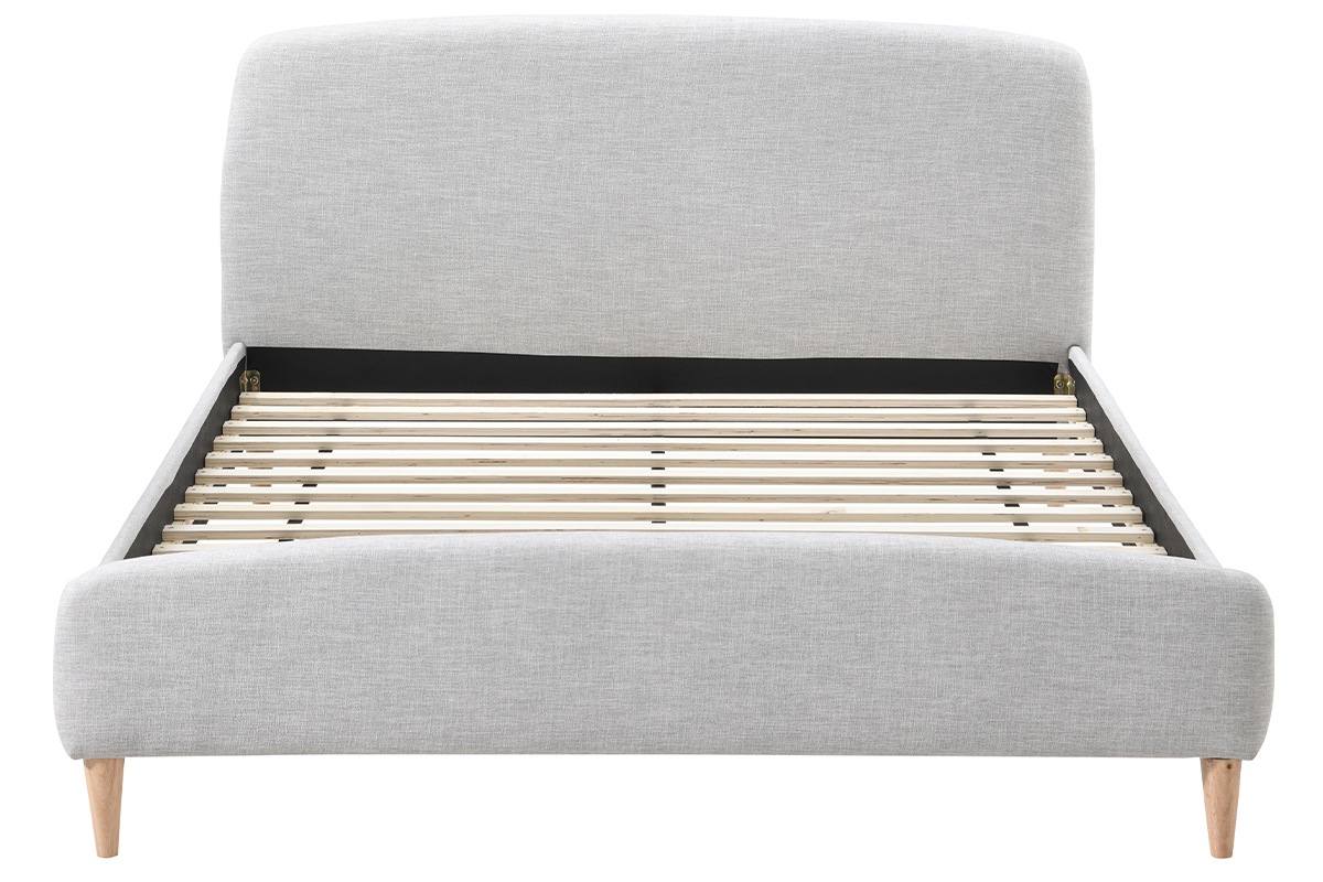 Parfaitement dessiné, ce lit queen size tire son inspiration des pays nordiques. Ses courbes légères et aérées offrent un design unique très subtil. Ce lit gris clair au revêtement tissu (100% polyester) se fondra parfaitement dans le décor d'une chambre avec une décoration plutôt classique, scandinave ou contemporaine. Ses lignes arrondies lui donnent un style tout en douceur et son piètement en hévéa massif un aspect chaleureux. Confortable et joli, ce lit double trouvera sa place dans une chambre d'adulte et scellera la promesse de nuits paisibles et enchantées...