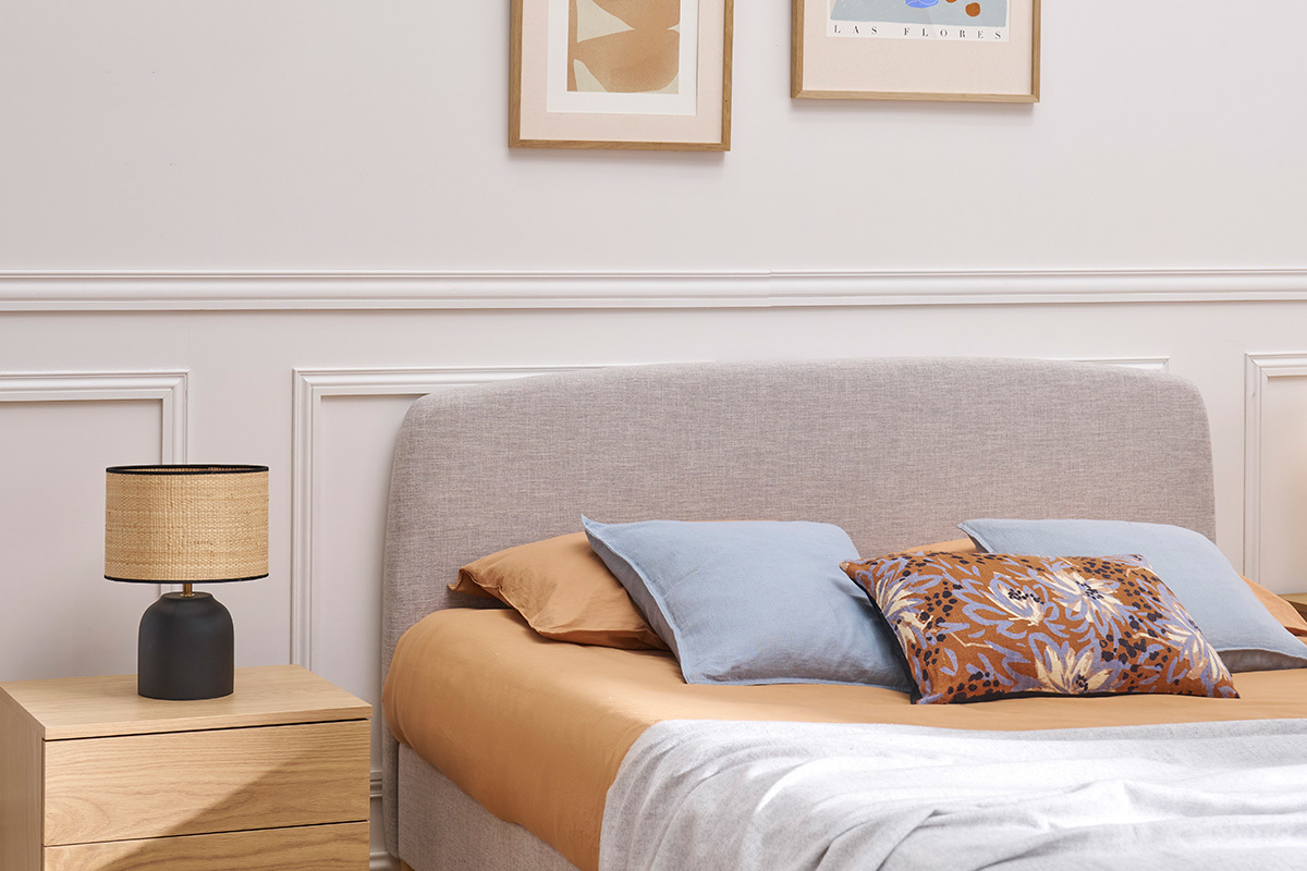 Accompagné d'un tapis clair et d'une commode en bois, il fera de la chambre un espace cosy.