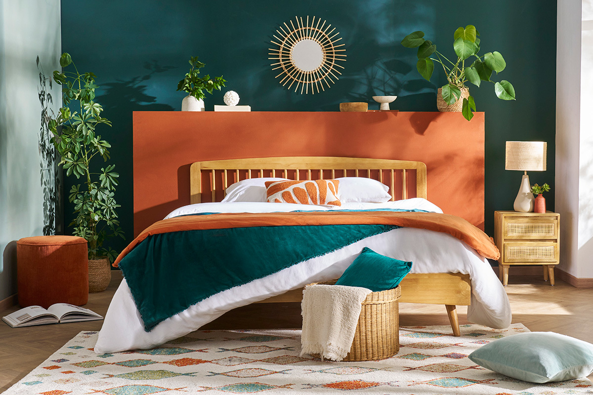 Papier peint panoramique d'inspiration tropicale, luminaires en fibres naturelles, linge de lit en lin... Créez une oasis urbaine pour former un havre de paix réconfortant et dépaysant !