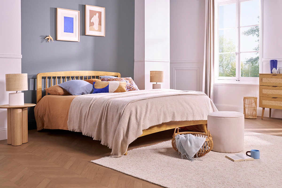 Si le bois réchauffe l'ambiance et doit sa notoriété au style scandinave, ce lit 2 places en bois s'installe confortablement dans un grand nombre de chambres à coucher. À la fois classique et intemporel, ce lit double 160x200 en bois permet d'éviter les faux-pas côté déco ! Exotique, romantique, nordique ou rustique ? Empreint de charme, le bois clair apporte une juste dose de poésie dans l'espace nuit et se marie à toutes les ambiances !