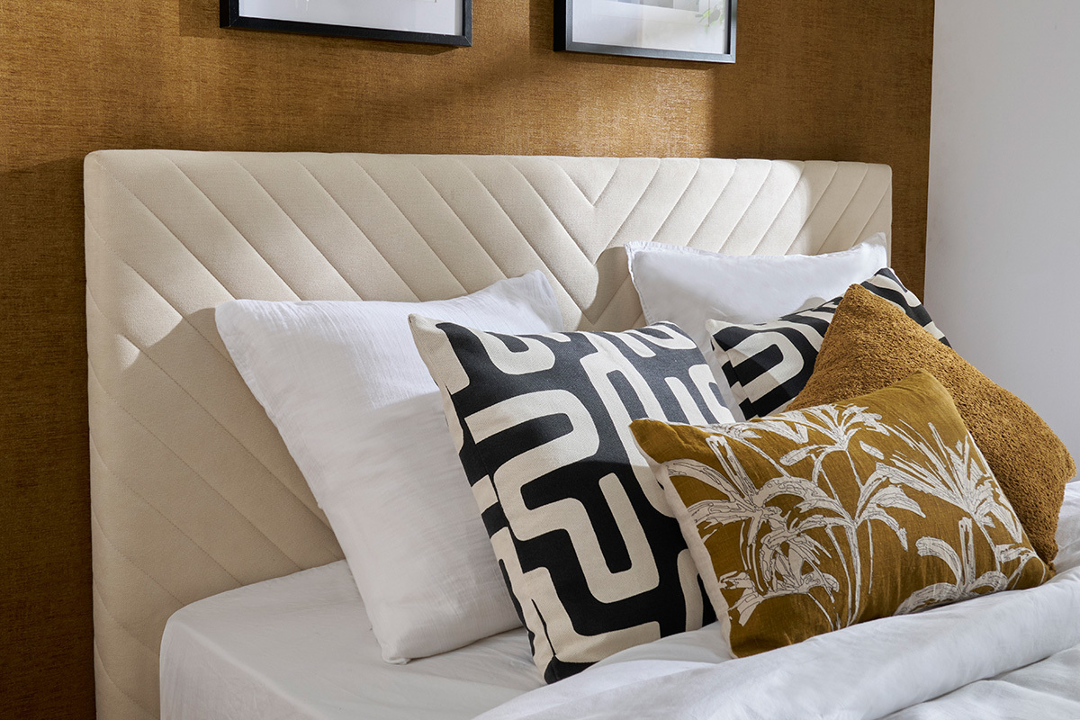 Les surpiqûres donnent un effet voluptueux et doux à la tête de lit matelassée qui, de sa forme à sa couleur, a tout bon pour être des plus design ! Un résultat tendance, pour créer une chambre réconfortante.