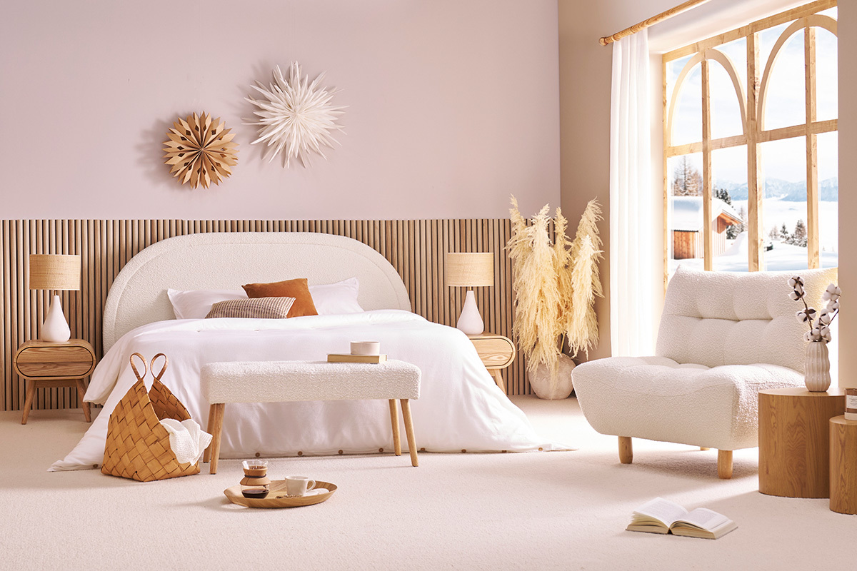 Lit CHARLINE : couleurs, lignes et matières jouent la carte du réconfort...