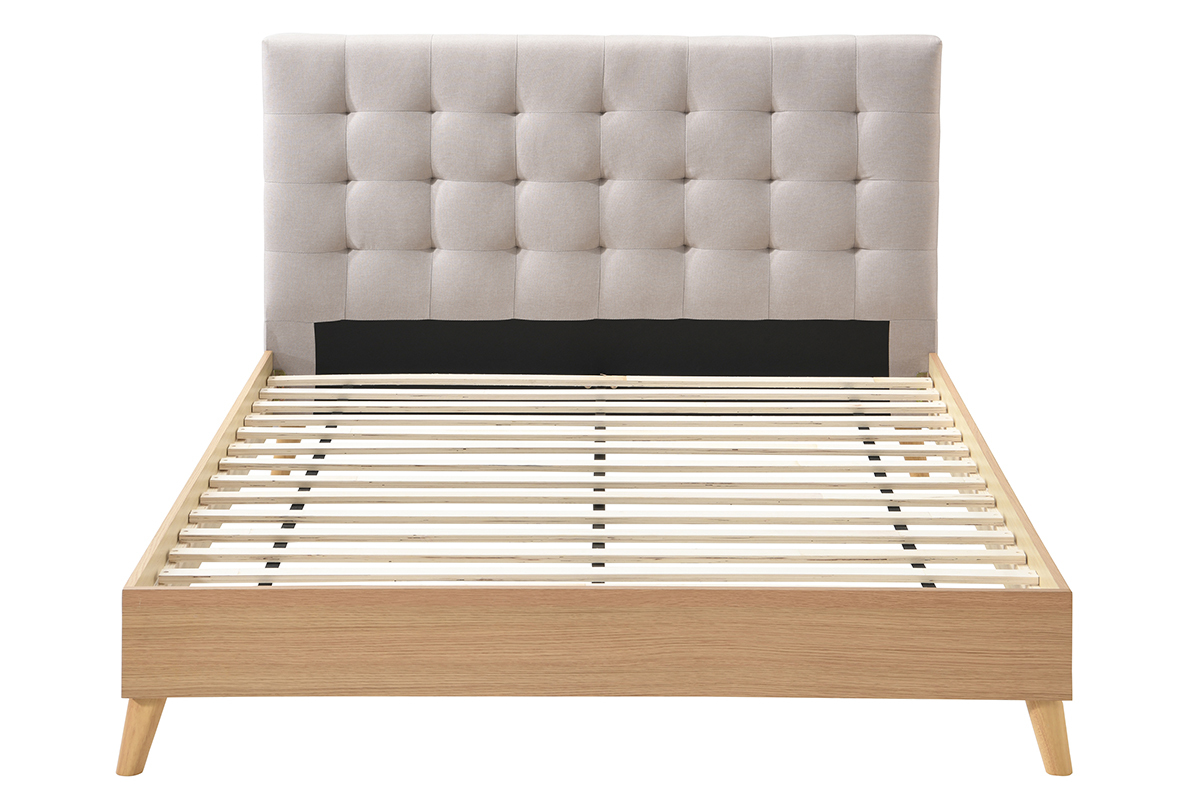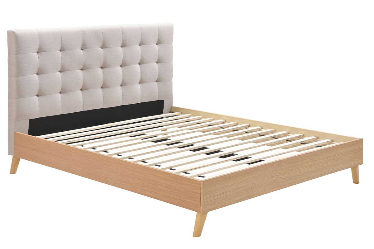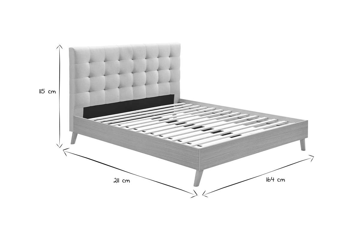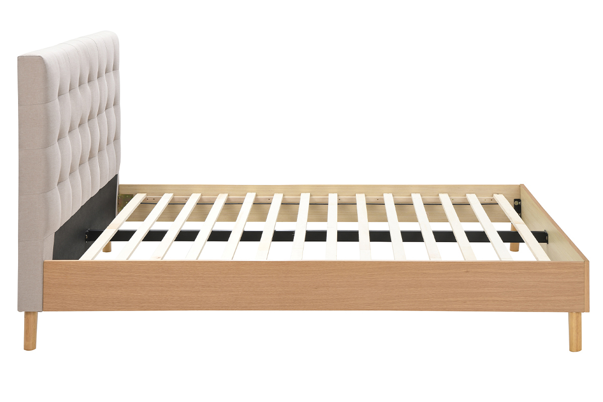 Composé d'un cadre en bois et d'une tête de lit capitonné en tissu beige (revêtement 100% polyester) ce lit queen size séduit par son naturel et son aspect chaleureux. Ses lignes modernes en font un lit 2 places parfait pour se créer une ambiance cosy et trendy dans une chambre d'adulte.