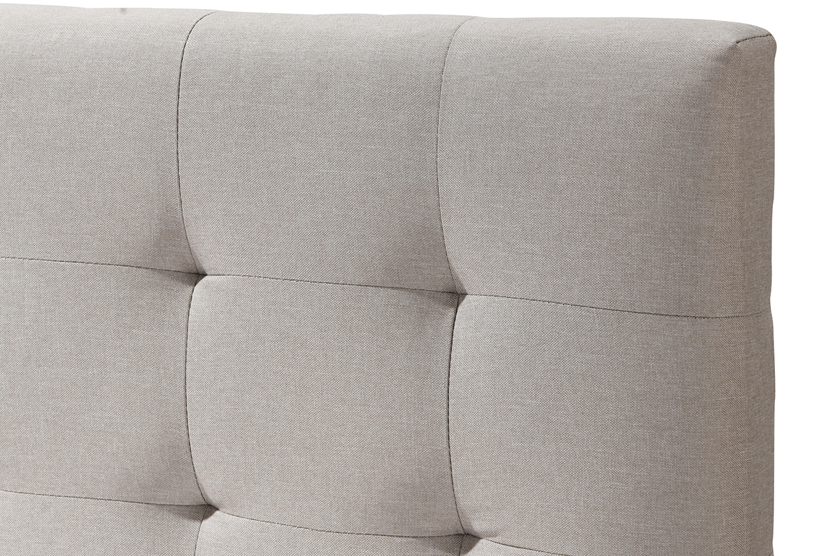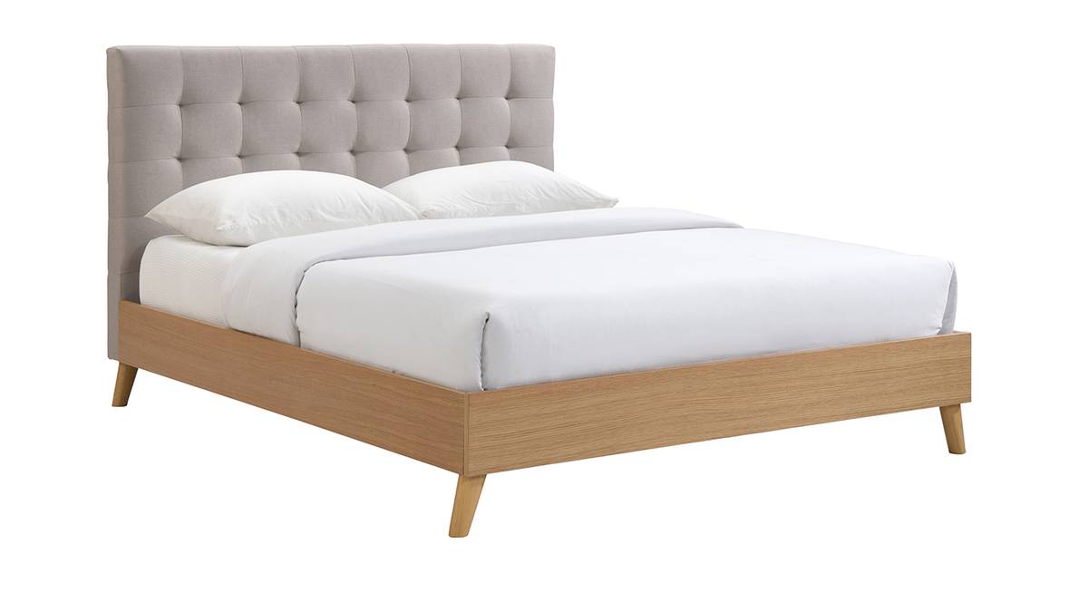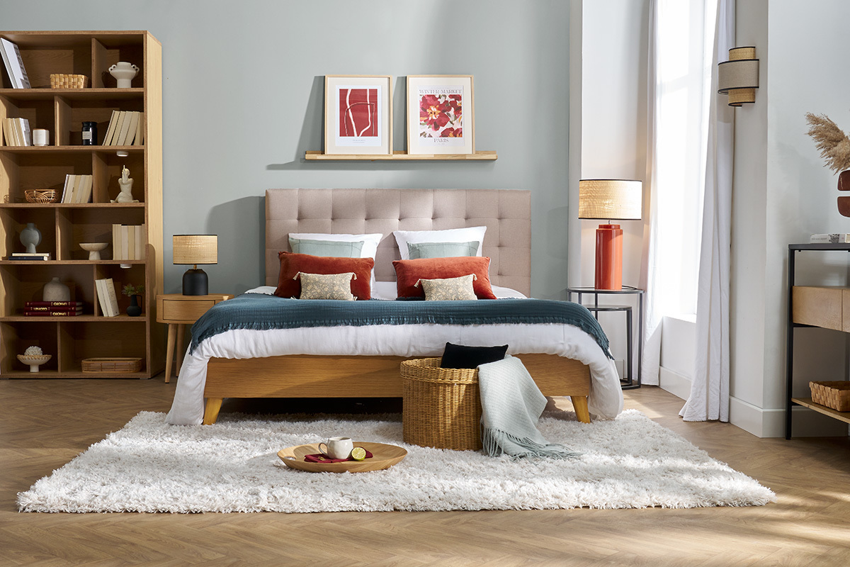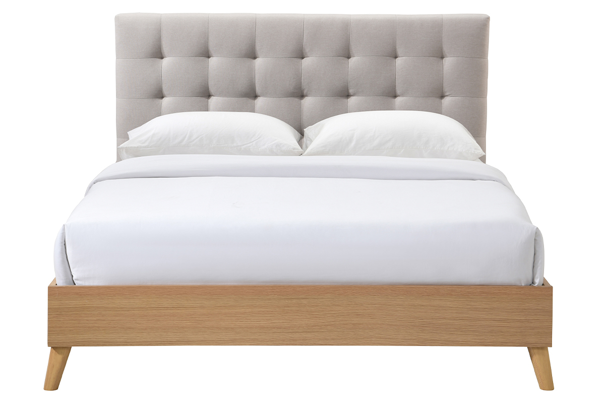 Composé d'un cadre en bois et d'une tête de lit capitonné en tissu beige (revêtement 100% polyester) ce lit queen size séduit par son naturel et son aspect chaleureux. Ses lignes modernes en font un lit 2 places parfait pour se créer une ambiance cosy et trendy dans une chambre d'adulte.