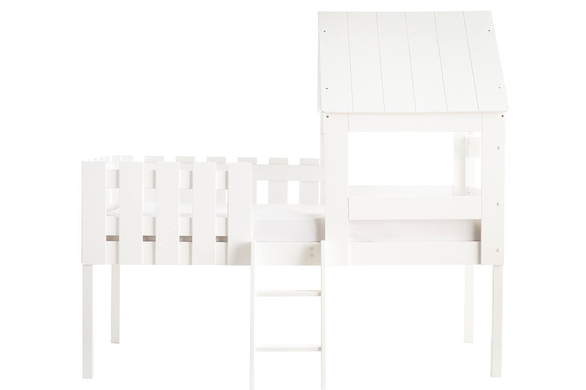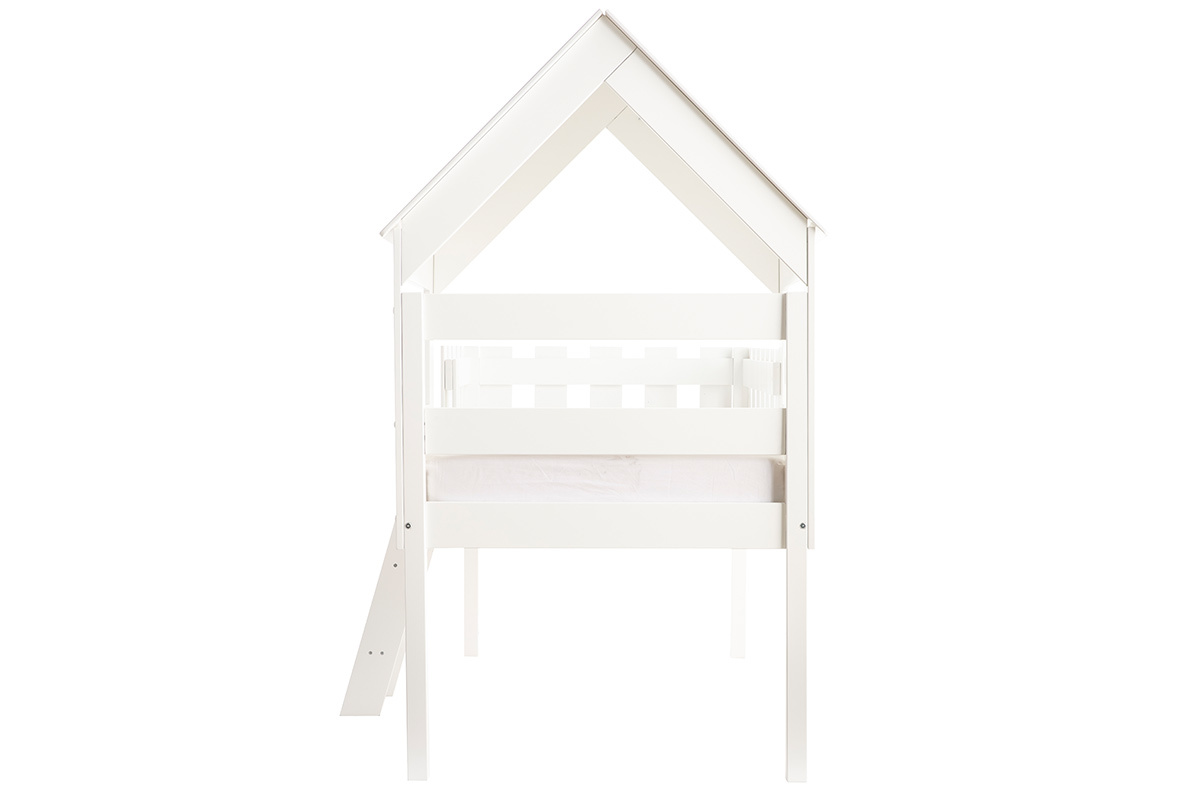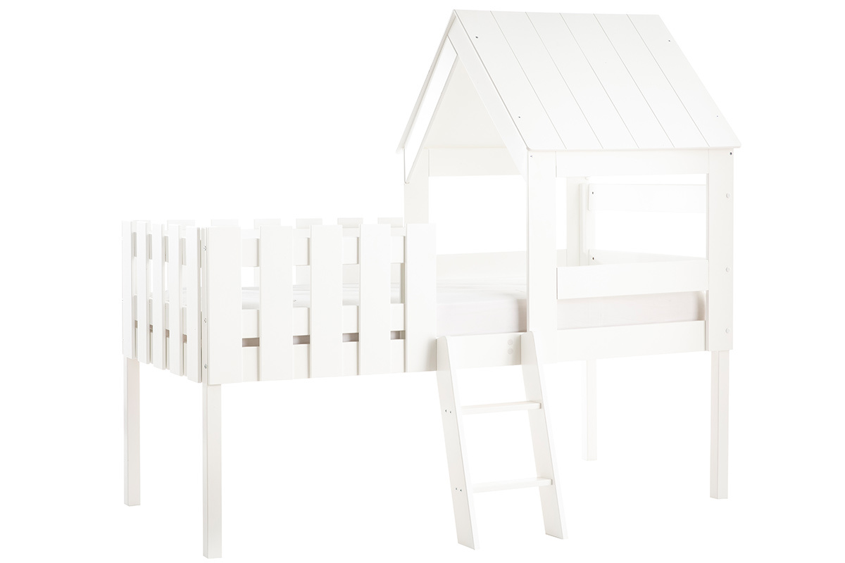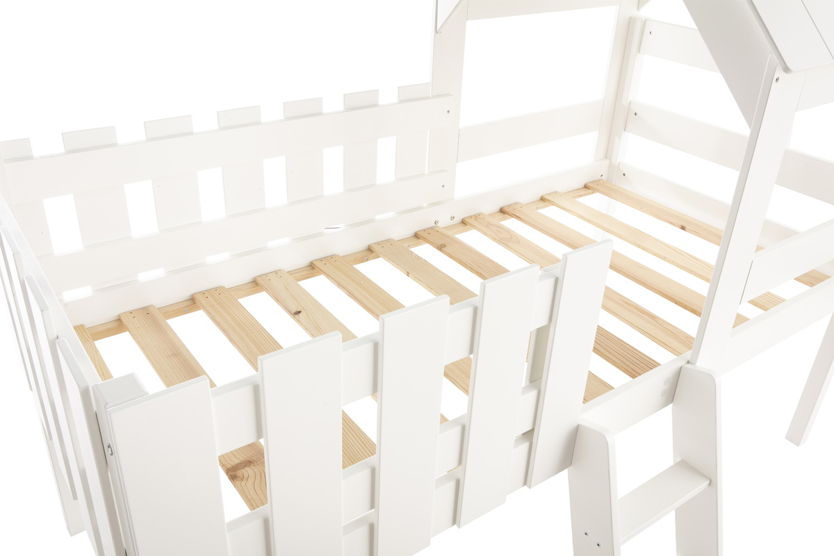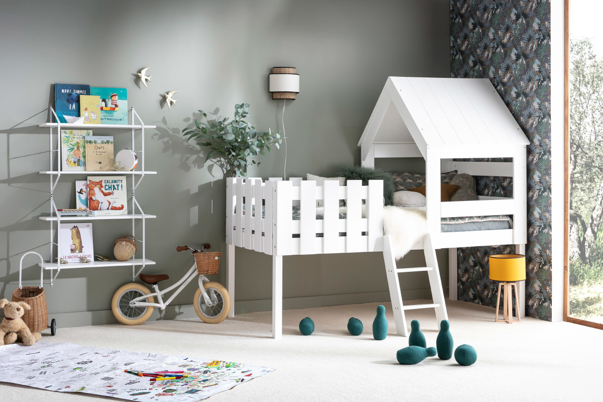 Perchés dans leur lit cabane, les petits aventuriers en herbe sont prêts pour explorer le royaume de Morphée. Ce lit enfant est conçu en panneaux de fibres de bois. C'est une pièce de mobilier parfaite pour vivre de grandes histoires en toute sécurité. Sa faible hauteur (55 cm), sa petite échelle et sa barrière permettent aux enfants de garder toute leur autonomie. La cabane dans les arbres s'invite dans la chambre dans une version lit tout en délicatesse. À eux la cabane de leur rêve, jour et nuit !