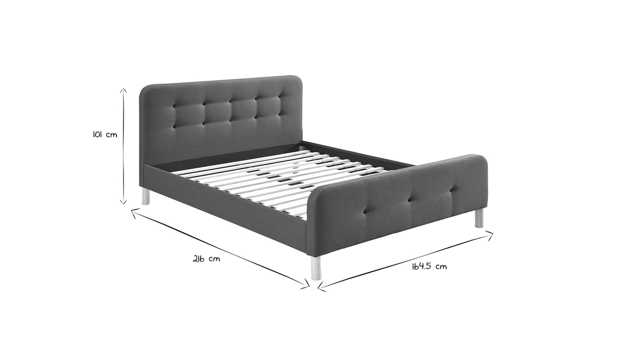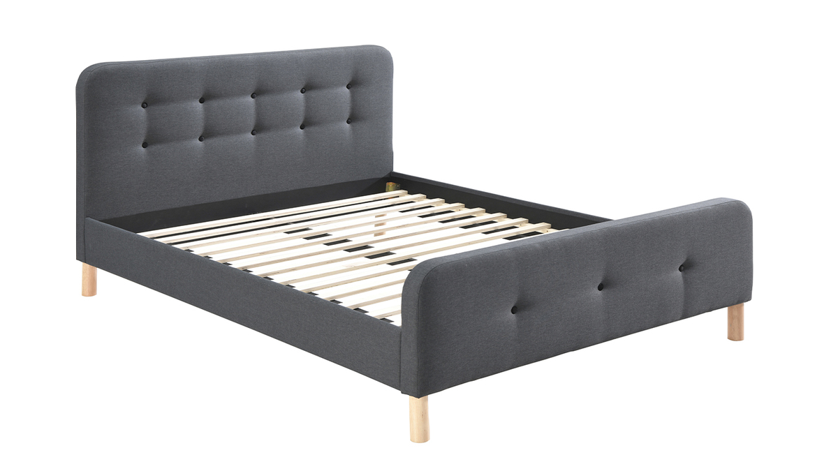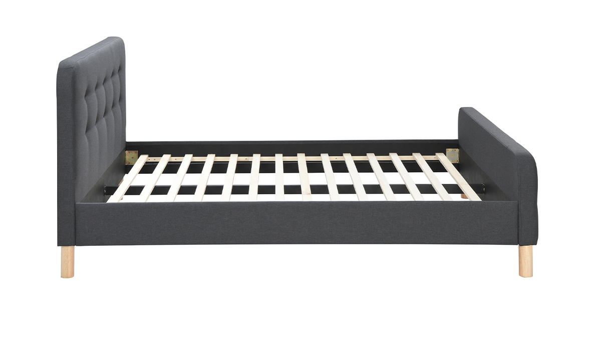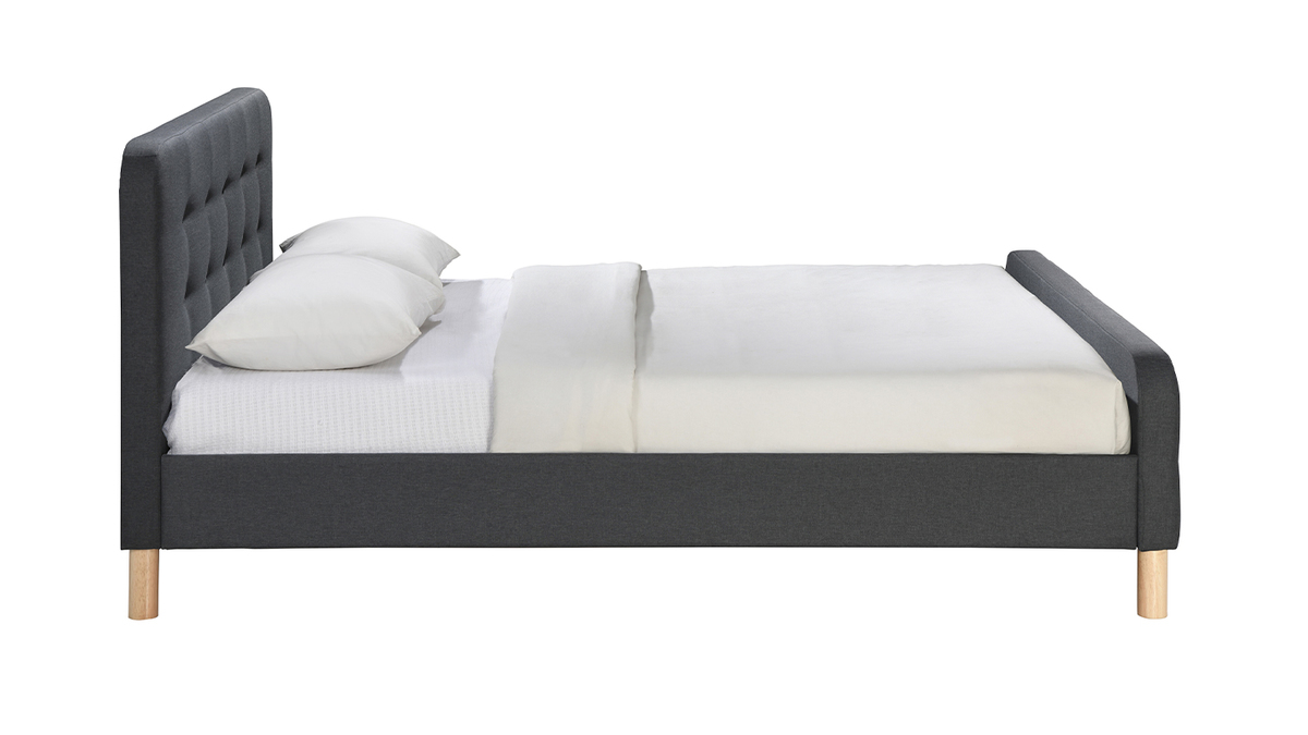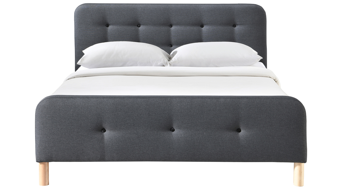 Ce lit 2 places joue de son charme pour vous séduire ! Avec ses pieds en bois arrondis auxquels s'ajoute un revêtement en tissu gris foncé capitonné (100% polyester), ce lit queen size inspirera de nombreux styles déco dans une chambre d'adulte.
