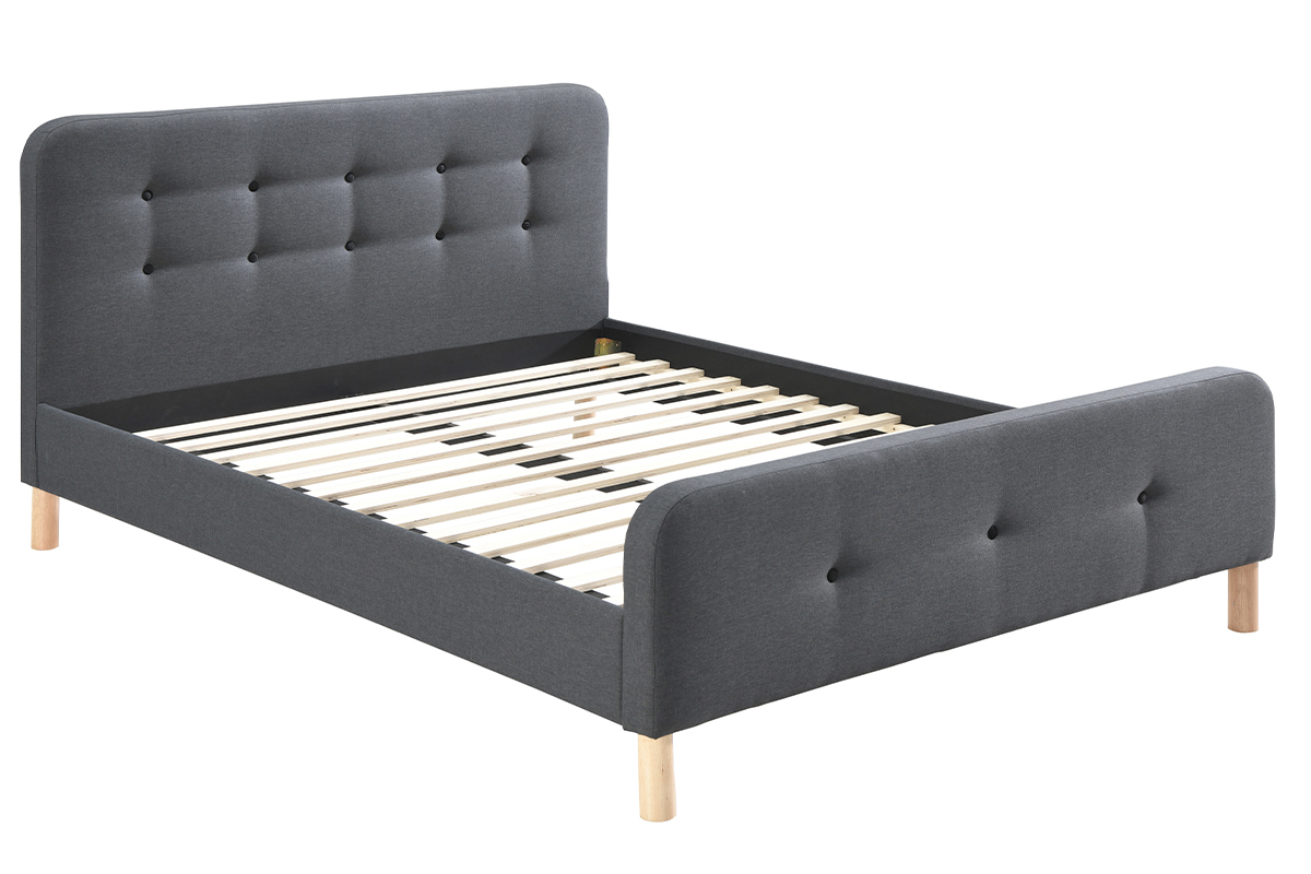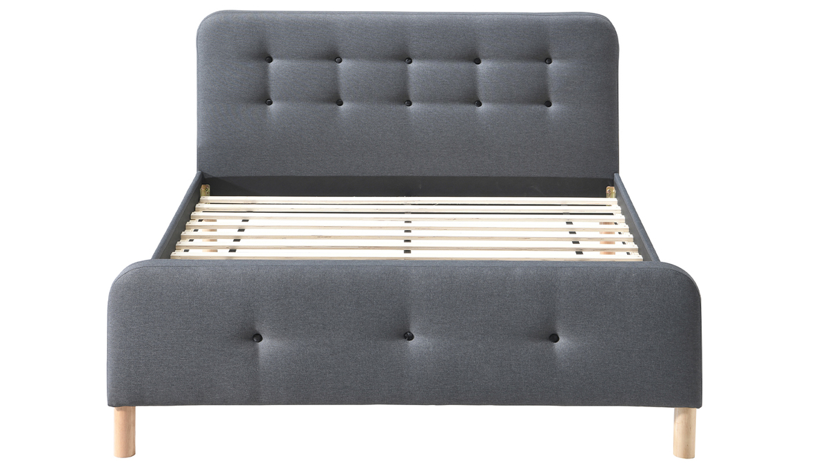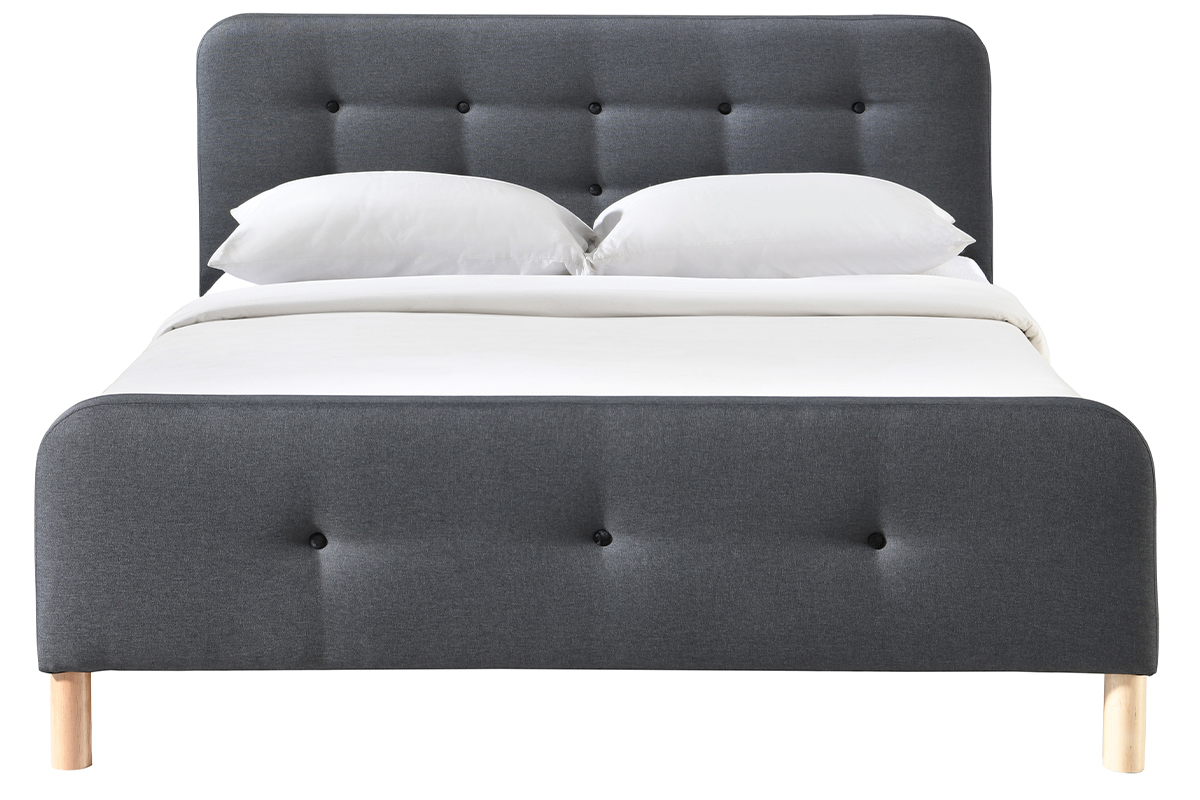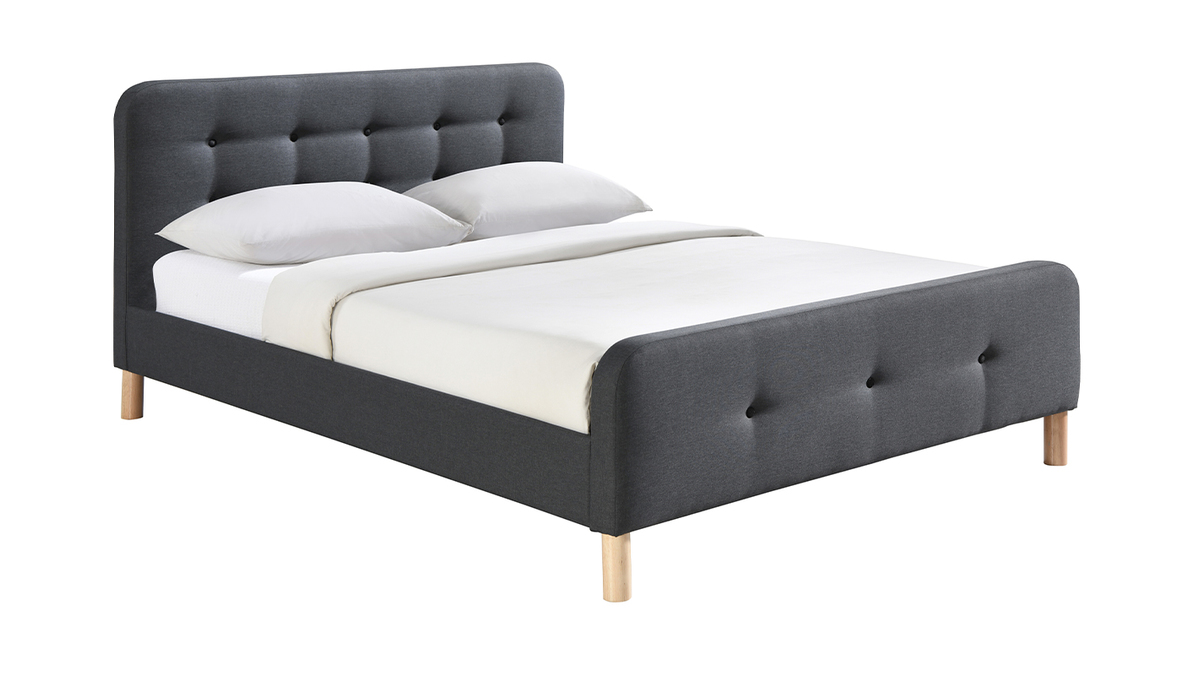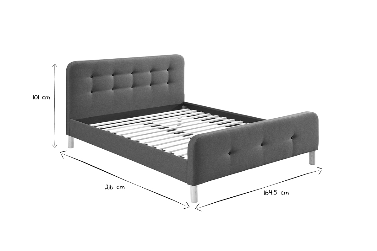 Ce lit 2 places joue de son charme pour vous séduire ! Avec ses pieds en bois arrondis auxquels s'ajoute un revêtement en tissu gris foncé capitonné (100% polyester), ce lit queen size inspirera de nombreux styles déco dans une chambre d'adulte.