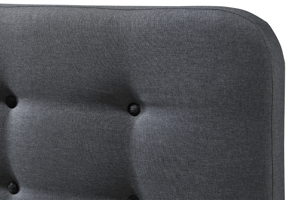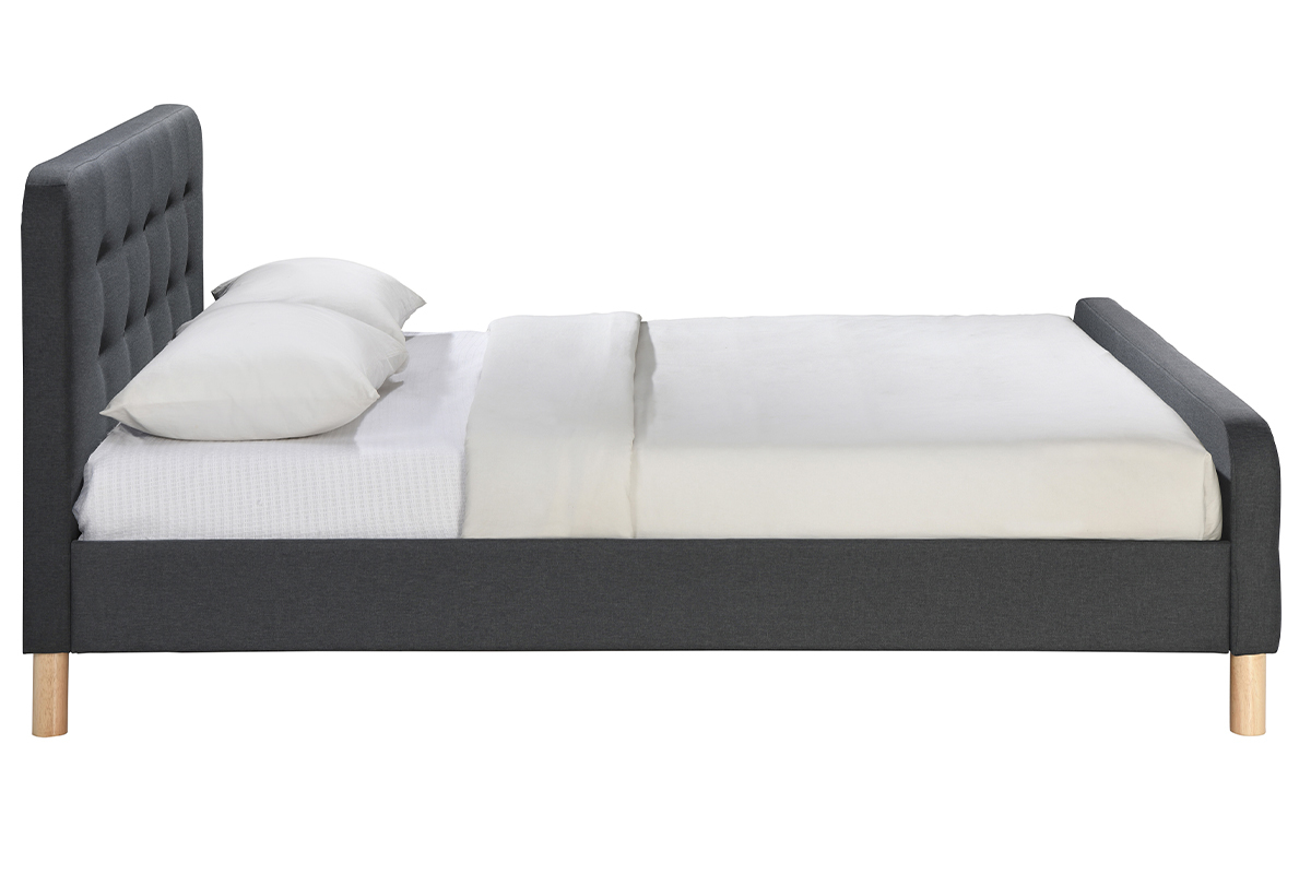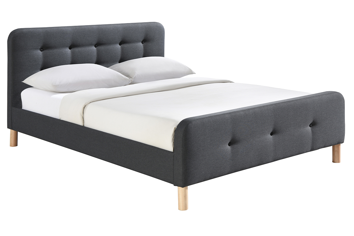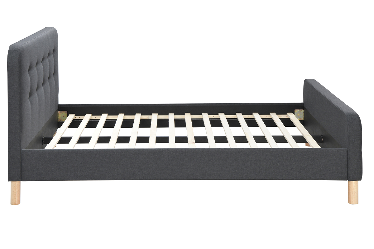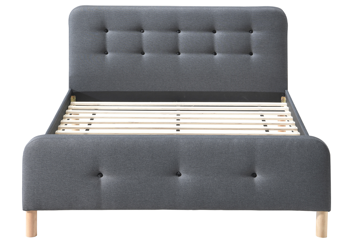 Ce lit 2 places joue de son charme pour vous séduire ! Avec ses pieds en bois arrondis auxquels s'ajoute un revêtement en tissu gris foncé capitonné (100% polyester), ce lit queen size inspirera de nombreux styles déco dans une chambre d'adulte.