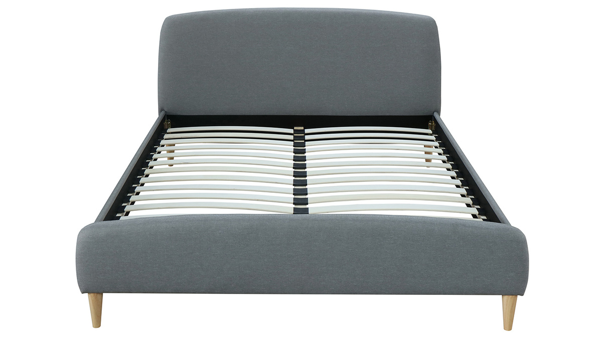 Parfaitement dessiné, ce lit queen size tire son inspiration des pays nordiques. Ses courbes légères et aérées offrent un design unique très subtil. Ce lit gris foncé au revêtement tissu (100% polyester) se fondra parfaitement dans le décor d'une chambre avec une décoration plutôt classique, scandinave ou contemporaine. Ses lignes arrondies lui donnent un style tout en douceur et son piètement en hévéa massif un aspect chaleureux. Confortable et joli, ce lit double trouvera sa place dans une chambre d'adulte et scellera la promesse de nuits paisibles et enchantées...