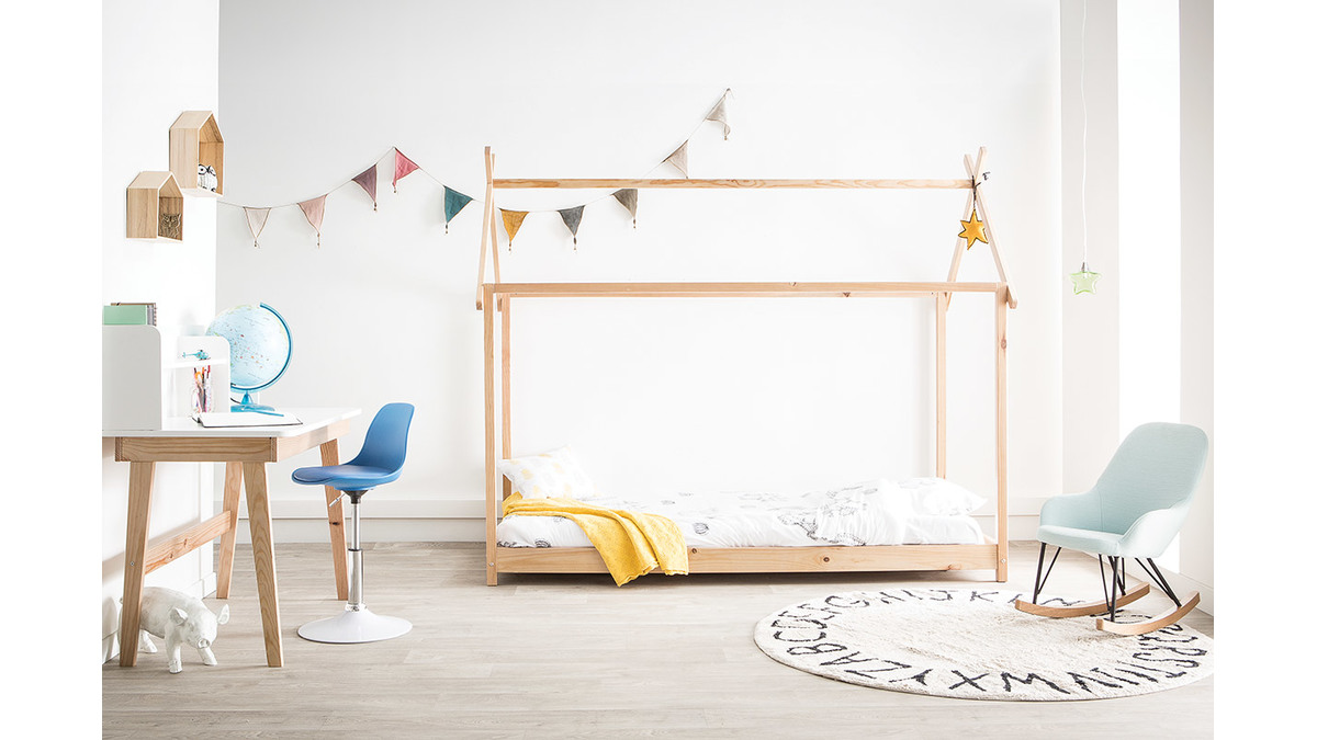 Quel enfant n'a jamais rêvé de dormir dans une cabane en bois ? Avec ce lit KBANE, le rêve peut enfin devenir réalité. Sa forme a été travaillée pour évoquer la forme d'une maison tout en subtilité. Sa structure bois clair et sa forme minimaliste en font un lit 90 scandinave tout en légèreté et en finesse. Il trouvera sa place dans une chambre cocooning au style naturel.