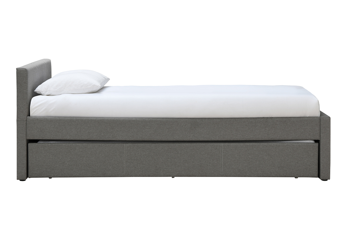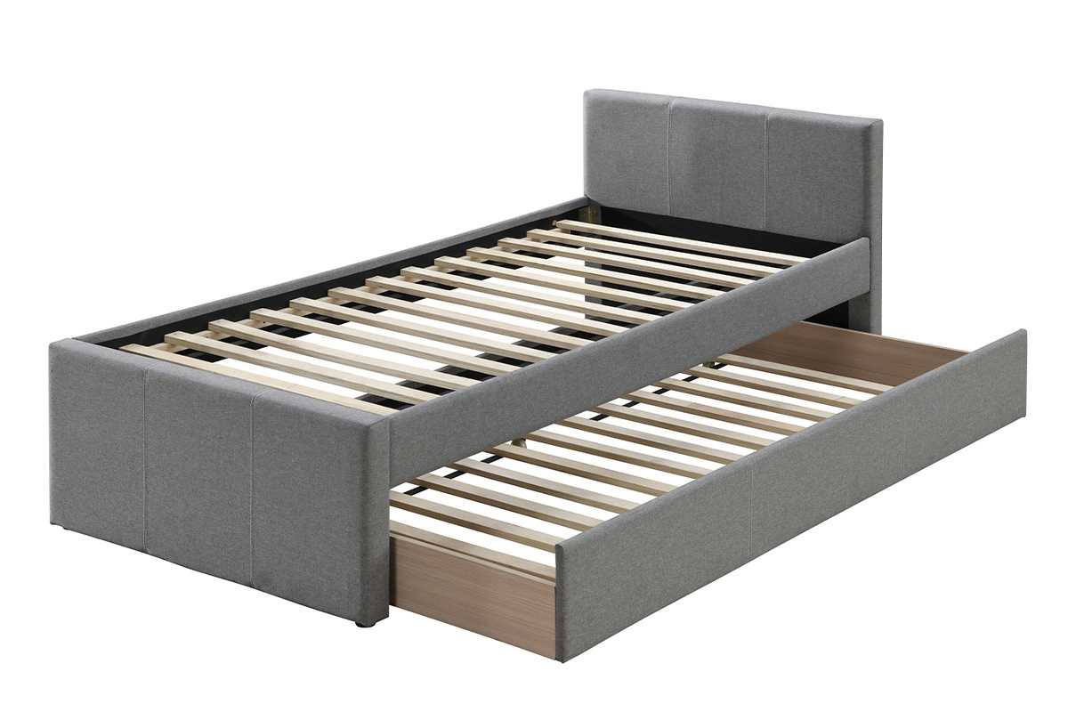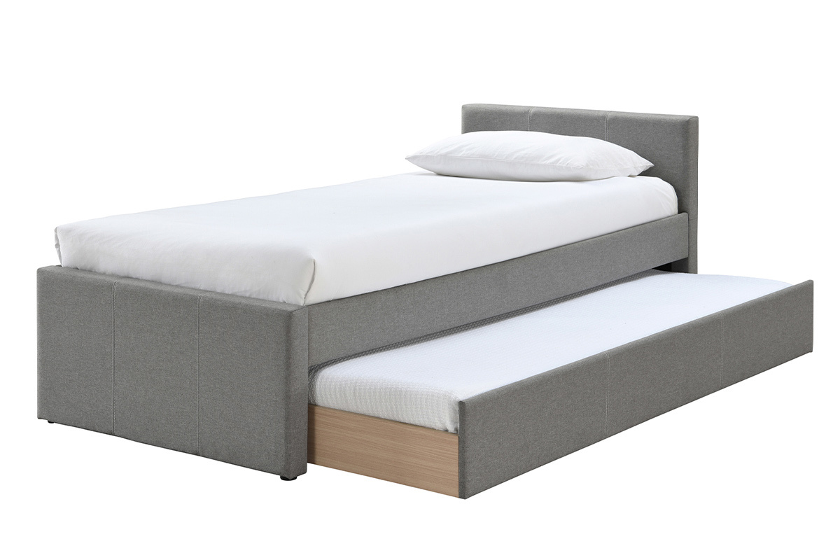 Lit gigogne gris 90x190 cm MACCO vendu avec sommiers. Livré prêt à assembler. Les matelas ne sont pas inclus.