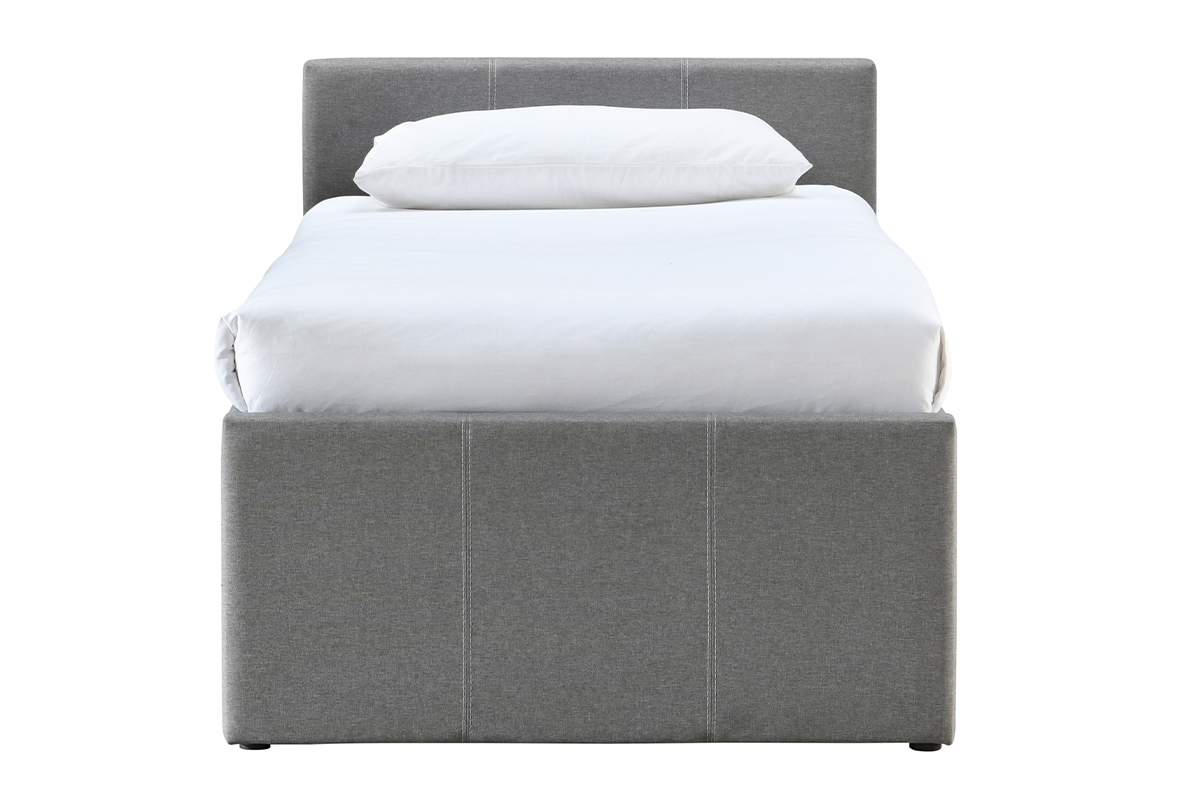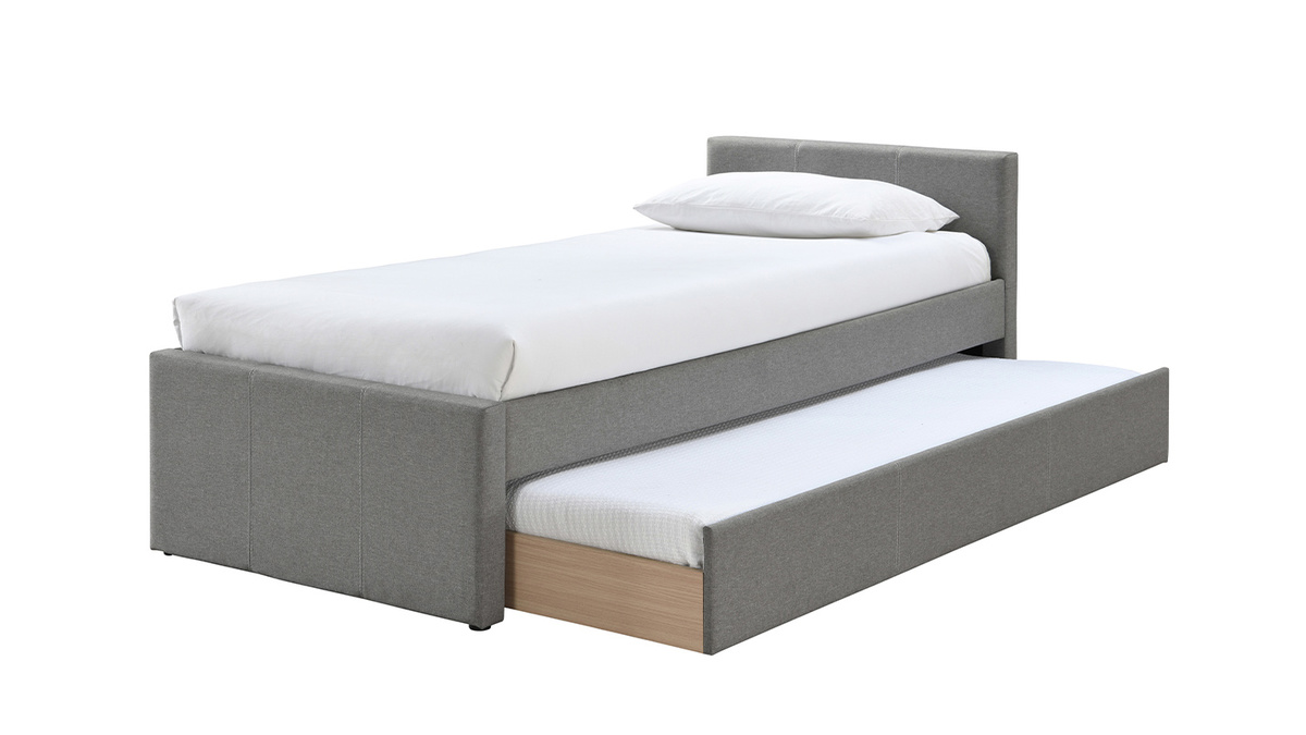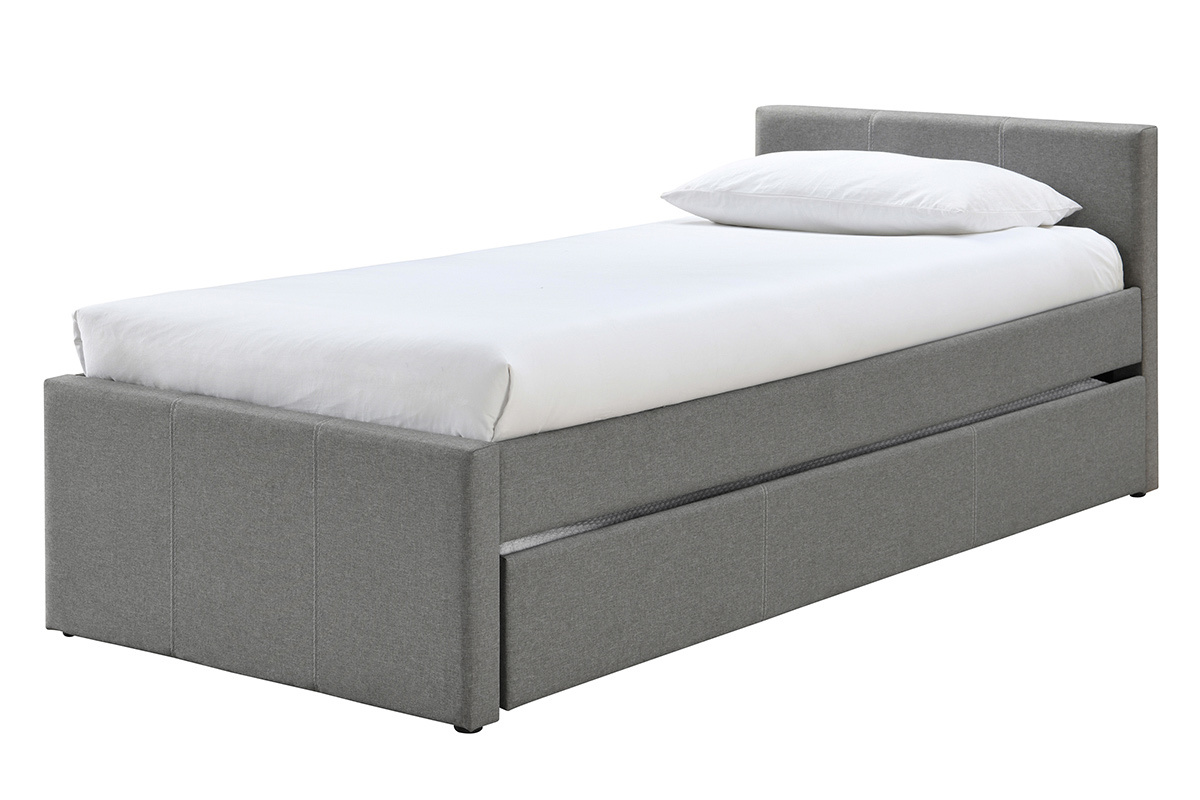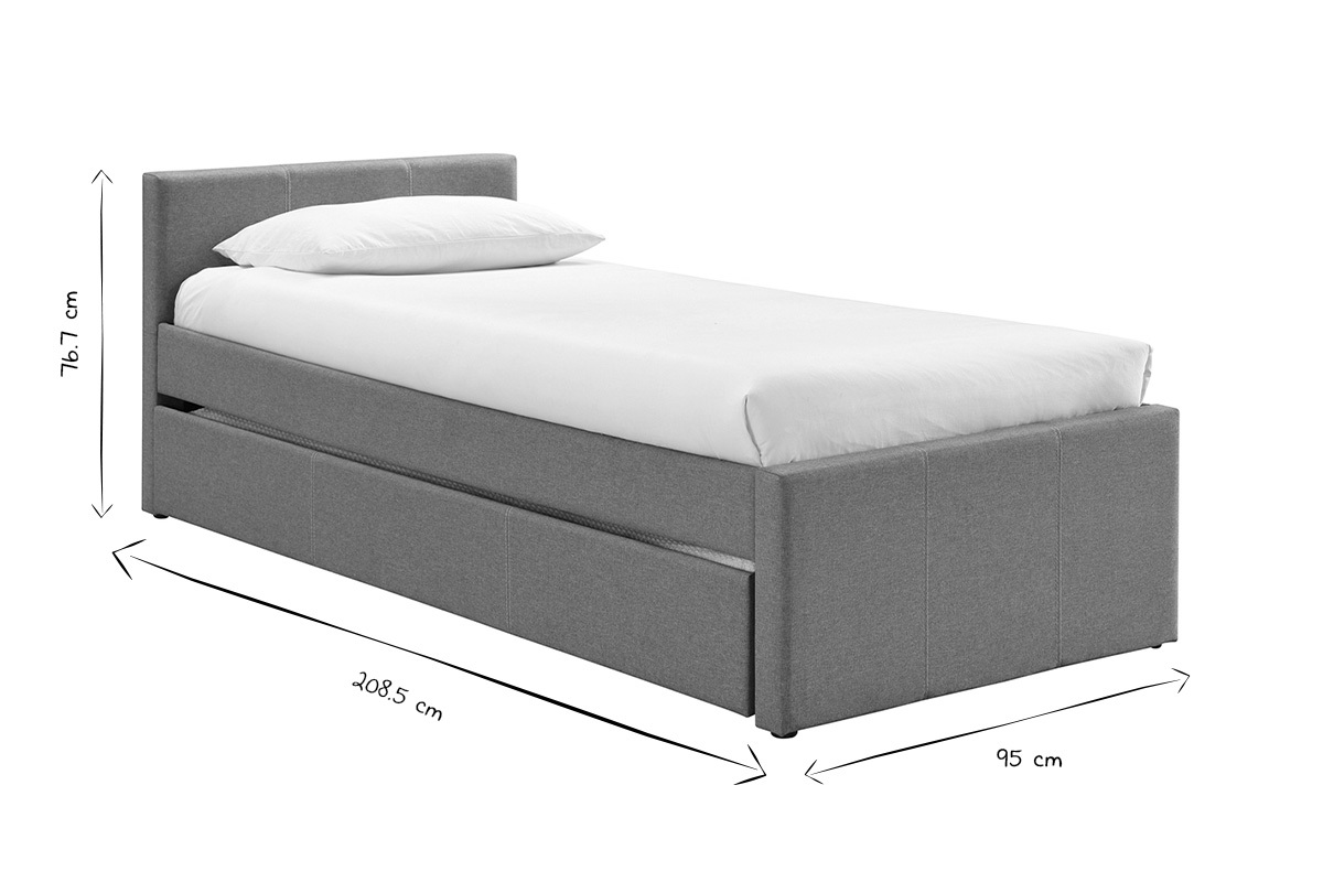 Lit gigogne gris 90x190 cm MACCO vendu avec sommiers. Livré prêt à assembler. Les matelas ne sont pas inclus.