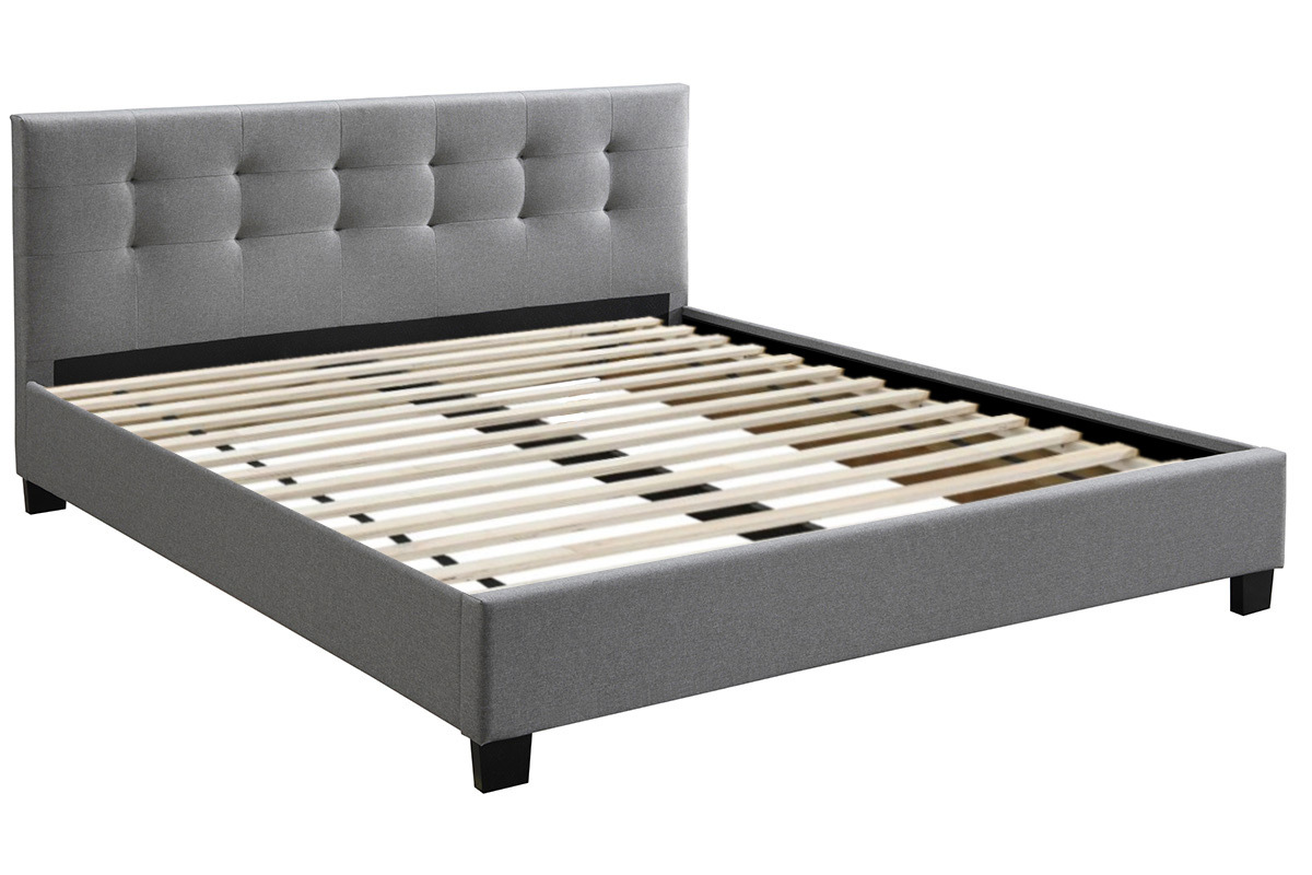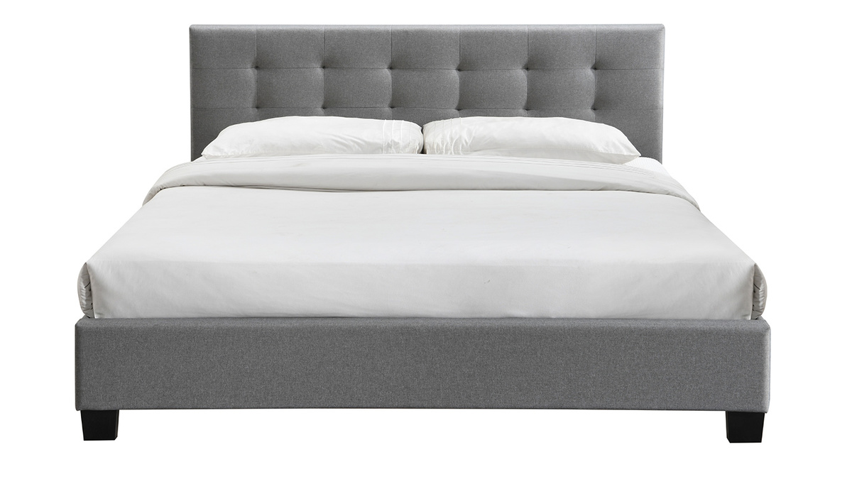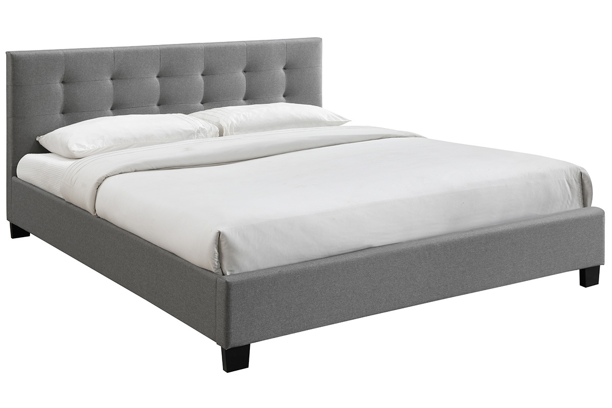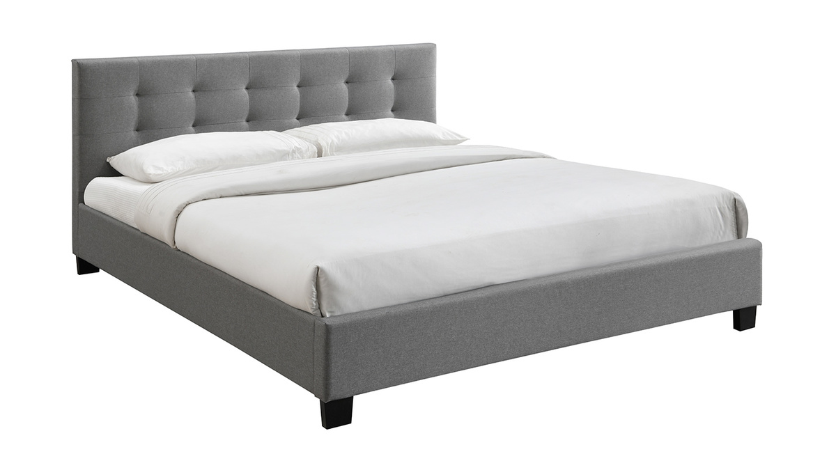 Lit 2 places 180x200 cm en tissu gris capitonné MARQUISE livré prêt à monter.