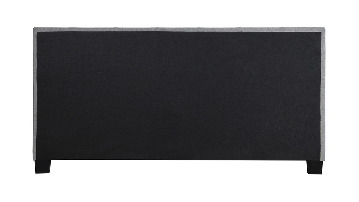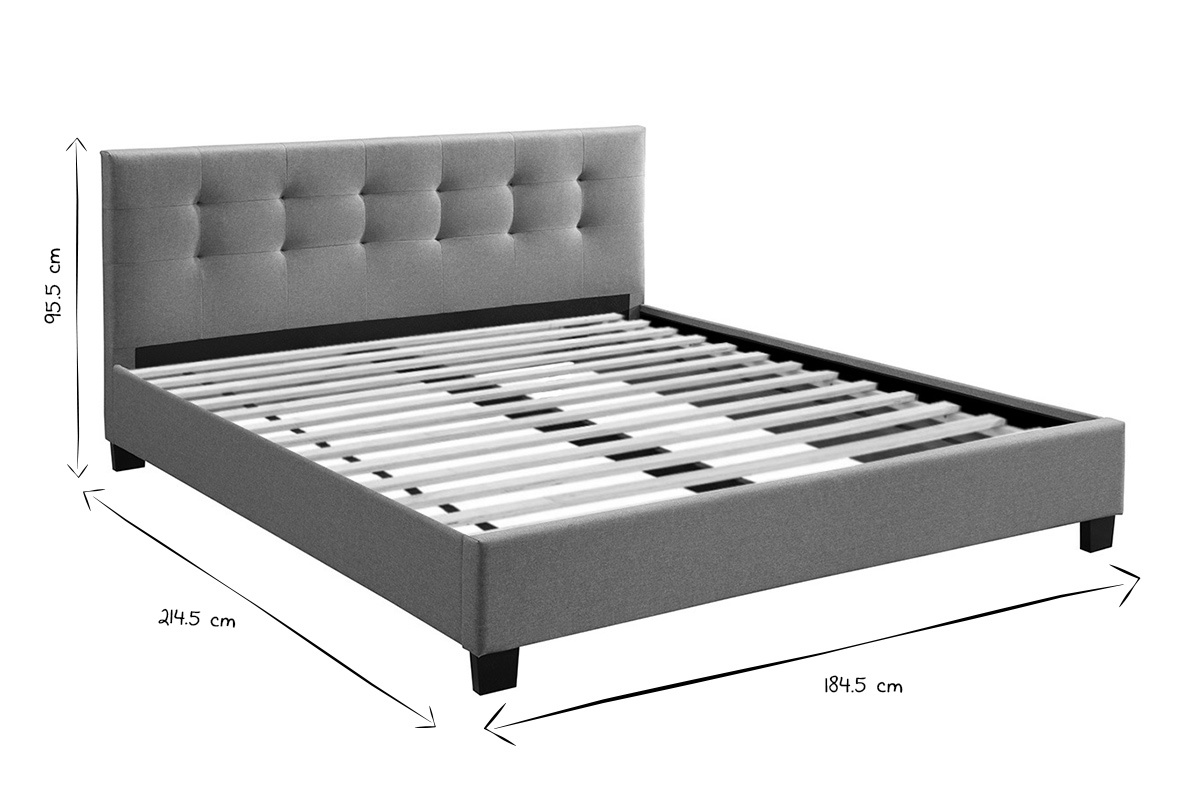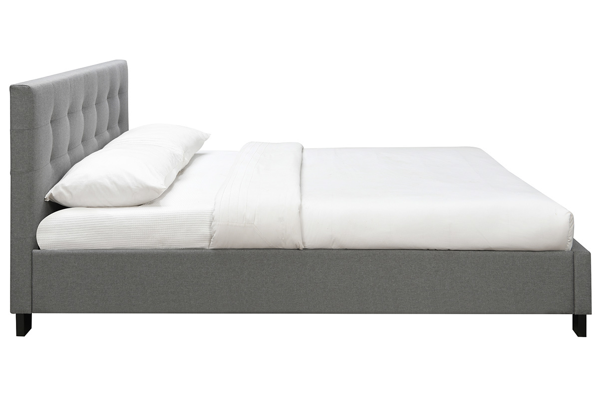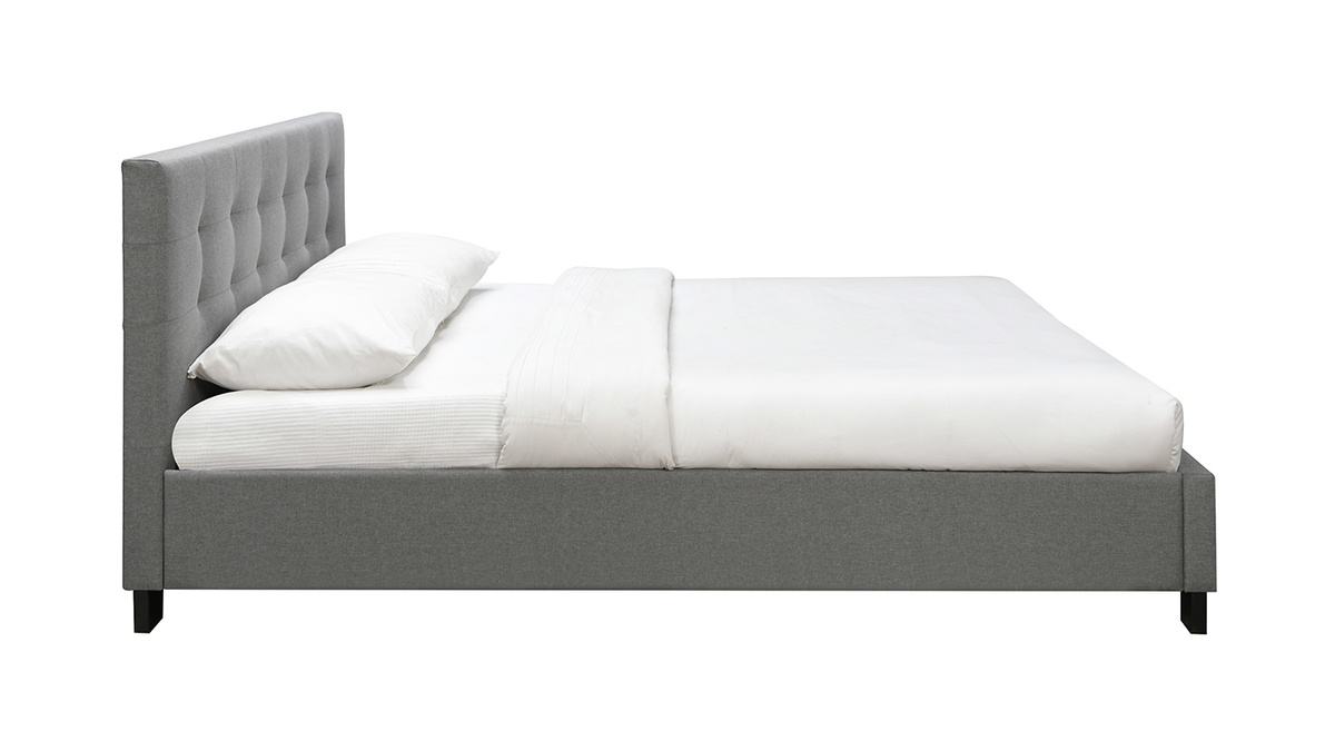 Lit 2 places 180x200 cm en tissu gris capitonné MARQUISE livré prêt à monter.