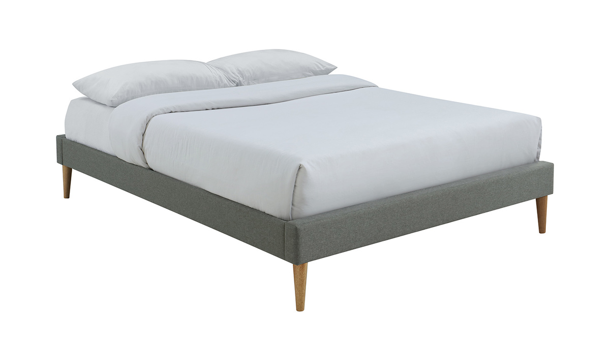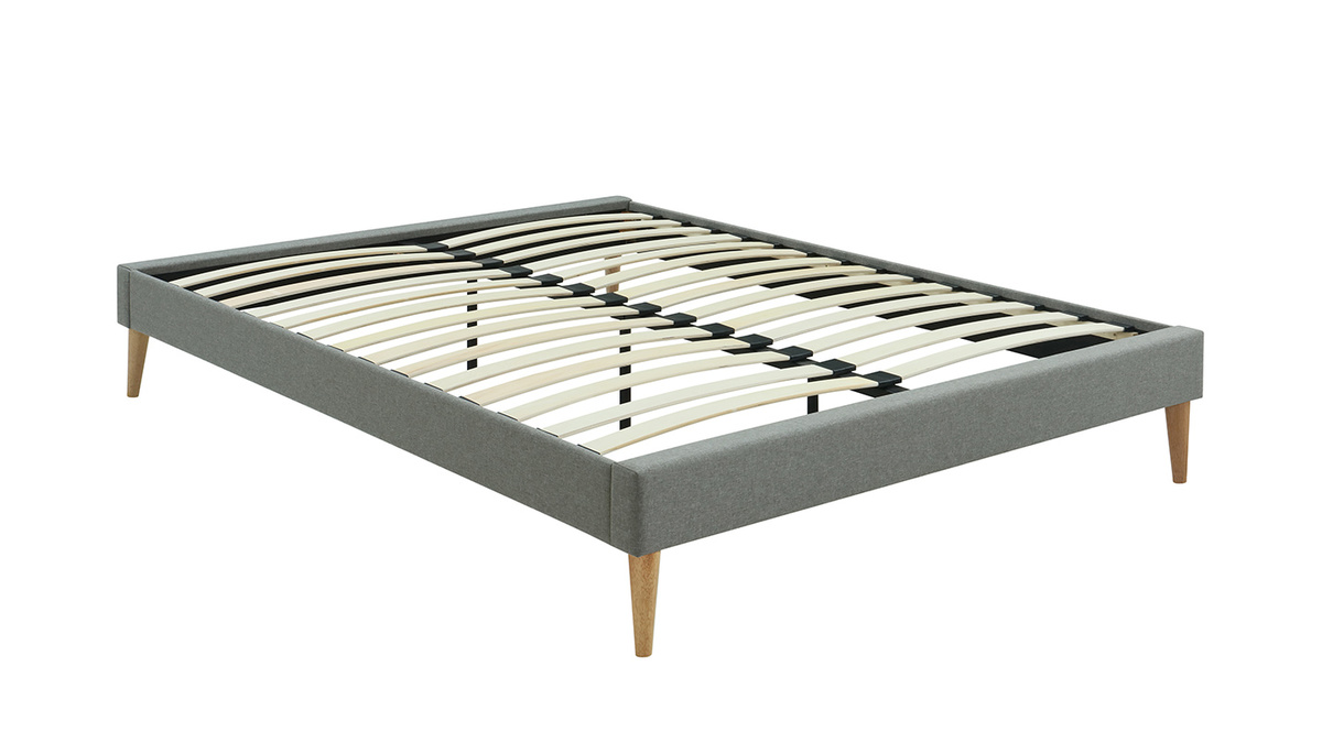 Lignes minimalistes, revêtement tissu gris (100% polyester), pieds en bois massif... Ce lit 2 places est un modèle discret qui ne manque pas de charme. Il est idéal pour s'aménager la chambre dont on a toujours rêvé et laisser libre court à sa créativité ! En associant le tissu gris et le bois clair - un duo indémodable en déco - à une forme épurée, ce lit double permet de jouer sur les accessoires pour se construire un espace nuit personnalisé. Adossé à un mur coloré ou accompagné d'une tête de lit originale, ce lit gris donnera vie à toutes vos envies déco.