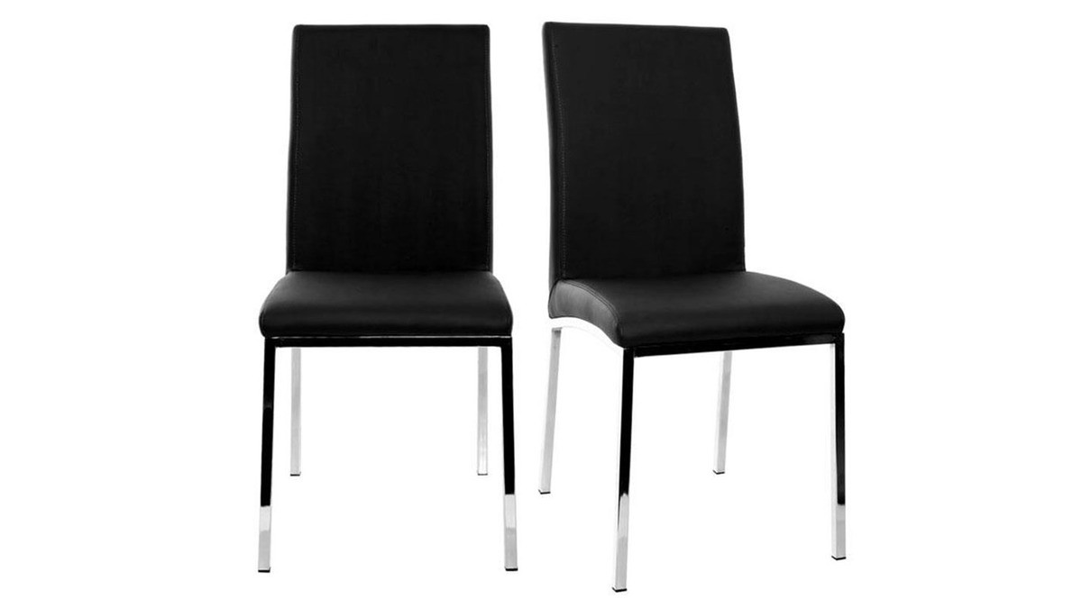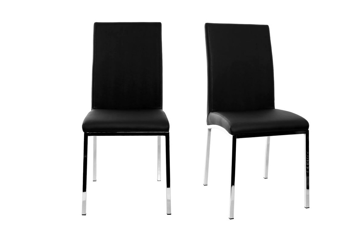 Avec leur grand dossier et leur magnifique piètement en métal chromé, ces chaises noires habillent avec élégance la table repas. Leur silhouette épurée s'intègre facilement dans un intérieur moderne et viendra sublimer un bureau ou une salle de réunion. Grâce à leur assise et leur dossier recouverts de polyuréthane, ces jolies chaises sont aussi tendance qu'intemporelles. Qualitatif et robuste, leur revêtement est idéal pour les repas quotidiens. Il est complété par un solide piètement métallique.